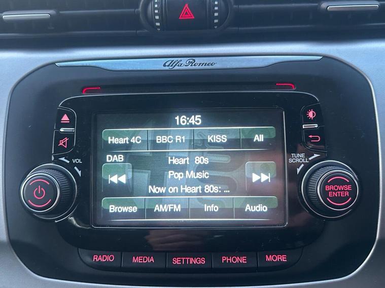 12v Socket, 17in Alloy Wheels - Sprint Speciale - Dark Finish, 60-40 Split Folding Rear Seats, ABS - Anti Lock Braking System, ASR - Acceleration Skid Control, AUX Connection, Air Vents - Rear, Airbags - Driver, Airbags - Front Side, Airbags - Head Protection Side, Airbags - Passenger, Airbags - Passenger Deactivation, Alarm System, Alfa Code Immobiliser, Alfa DNA Driving Mode Selector, BAS - Brake Assistant, Badge - Sprint, Bluetooth Audio Streaming, Brake Calipers - Red Brembo, Card Holder, Climate Control - Dual Zone, Condensation Sensor, Cruise Control, Cup Holder, DAB Radio, Daytime Running Lights - LED, Door Handles - Darkened, Door Mirrors - Electrically Folding, Door Mirrors - Grey, EBD - Electronic Brakeforce Distrubution, EPS - Electric Power Assisted Steering, Electric Windows - Front with One Touch Function, Electric Windows - Rear, Electrochromic Rear View Mirror, Electronic Q2 Differential, Exterior Temperature Sensor, Exterior Trim - Dark Finishing, Floor Mats, Front Fog Lights, Front Grille - Darkened, Head Restraints - Anti Whiplash, Headlamp - Adjustment, Headlights - Auto On - Dusk Sensor, Headlights - Darkened, Headlining - Darkened Interior, Heated Rear Window, Hill Holder, ISOFIX Attachments for Child Seat Protection, Kick Plates - Aluminium, Matrix Display - White Illumination, Multifunction Display, Parking Sensors - Rear, Rain Sensors, Rear Cluster Lights - LED, Rear Spoiler, Remote Audio Controls, Remote Boot Release, Remote Central Locking, Safe Lock, Seats - Drivers Height Adjustment, Seats - Front Lumbar Adjustment, Seats - Passenger Height Adjustment, Seats - Sports, Side Skirts, Smartphone Connectivity, Space Saver Spare Wheel, Speakers x6, Sports Pedals - Aluminium, Sprint Speciale Pack, Steering Wheel - Leather-Sports, Steering Wheel - Red Stitching, Suspension - Sports, TPMS - Tyre Pressure Monitoring System, Tinted Windows - Dark Rear, Trim Inserts - Darkflair Fire - Dashboard and Door and Central Tunnel, Trip Computer, USB Connection, Uconnect 5in Colour Touchscreen Infotainment System, VDC - Vehicle Dynamic Control, Visibility Pack, Voice Commands and SMS Reader