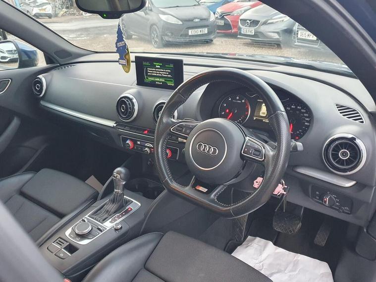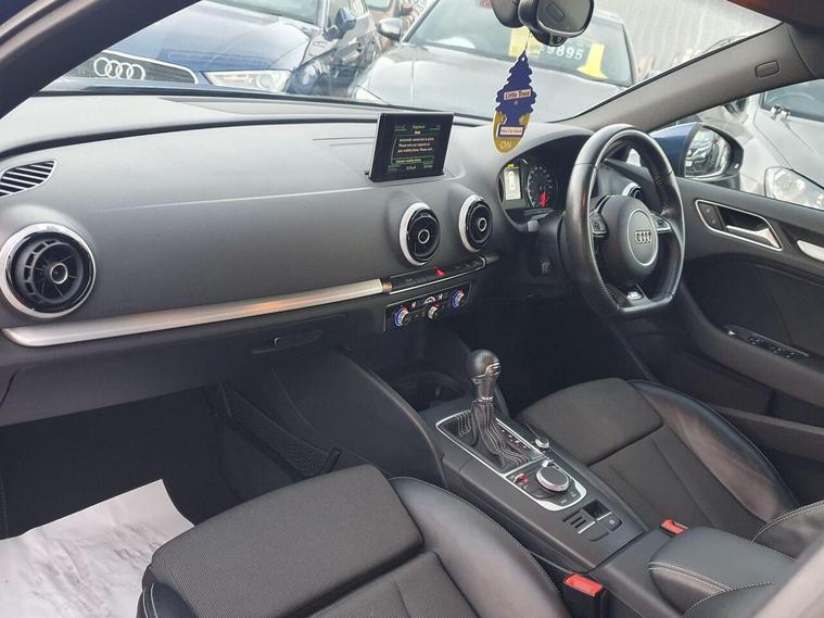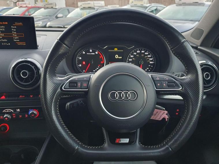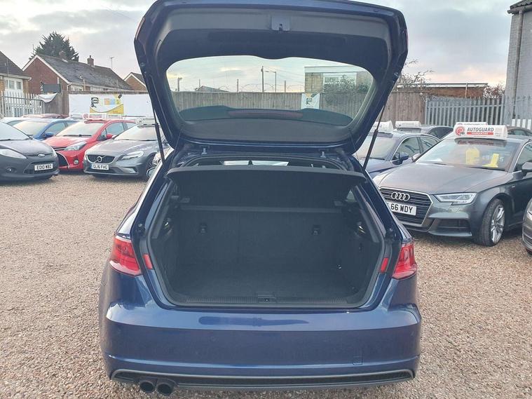 12V Power Socket - Centre Console, 12V Power Socket - Rear, 18in Alloy Wheels - 5-Parallel Spoke Design Partly Polished, 2 x SDXC Card Readers, ABS - Anti-Lock Braking System, AMI - Audi Music Interface, ASR - Anti Slip Regulation, Adaptive Brake Lights, Airbags - Driver, Airbags - Drivers Knee, Airbags - Front Passenger, Airbags - Front Side, Airbags - Head Level Side For Front and Rear, Alarm - Thatcham Category 1, Aluminium Interior Elements, Anti Theft Locking Wheel Bolts, Audi Drive Select, Audio Output - 80 Watts, Car Jack, Child Locks - Manual, Cloth Headlining in Black, Coat Hooks - B Pillar - Both Sides, Colour Drivers Information System - DIS, DAB Digital Radio, Display Screen Colour - 5.8in, Door Mirrors - Body Coloured with Integrated LED Indicators, Door Mirrors - Electrically Adjustable and Heated, Door Sill Trims with S Line Logo, Dual-Zone Electronic Climate Control, EBD - Electronic Brakeforce Distribution, EDL - Electronic Differential Lock, ESP - Electronic Stability Programme, Electric Windows - Front and Rear, Electromechanical Parking Brake, Electromechanical Power Steering, Exhaust Tailpipe - Twin, First Aid Kit, Fog Lights - High Gloss Black Surrounds, Front Centre Armrest, Front Fog Lights, Front Passenger Airbag Deactivation Switch, Front Sports Seats, Front and Rear Floor Mats, Gear Knob - Perforated Leather, Glovebox - Illuminated, Headlights - Automatic Dynamic Range Control, Headlights - Bi-Xenon Plus, Headlights Washers, Heated Rear Windscreen, Heated Windscreen Washer Jets, Height Adjustable Boot Floor, Hydraulic Brake Assist, ISOFIX Child Seat Mounting for Front Passenger and Rear Outer Seats, Illuminated Vanity Mirrors, Immobiliser, Inlays - Matt Brushed Aluminium, Interior Elements - Air Vents - Aluminium, Interior Elements - Frame Around the Inside Door Handle - Aluminium, Interior Elements - Glove Compartment - Aluminium, Interior Elements - Window Control Switches - Aluminium, Interior Lighting, LED Daytime Running Lights, LED Rear Indicators, LED Rear Lights, Luggage Compartment - Illuminated, Luggage Compartment - Lashing Points x4, Luggage Compartment - Side Net, MMI Radio, Mobile Telephone Preparation - Bluetooth Interface, Model and Engine Technology Badges at Rear, Pollen Filter, Preparation for SD Card-Based Navigation System, Radiator Grille - High Gloss Black, Rear Parcel Shelf Removable, Remote Central Locking with 2 Fold Away Keys, Rest Recommendation System, S Line Badges on Front Wings, S Line body styling, S line Design Front Bumper-Rear Diffuser-Side Sills and Roof Spoiler, Seat Belt Reminder for All Seats, Seats - Adjustment for Cushion Depth, Seats - Extendable Thigh Support, Seats - Front Height Adjustment, Seats - Split Folding Rear - 60-40, Secondary Collision Brake Assist, Smoking Package, Space Saver Spare Wheel, Speakers x8, Sport Suspension, Steering Wheel - 3-Spoke Leather-Flat Bottomed-Shift Paddles, Steering Wheel - Gear Shift Paddles, Steering Wheel - Height and Reach Adjustable, Steering Wheel - Multi-function, Storage Compartment - Centre Console, Storage Compartment Under Rear Seat, Storage Compartments - Door Side Trims, Storage Net in Front Passenger Footwell and Front Seat Backrests, Storage and Luggage Package, Sun Visors - with Covered Vanity Mirrors, Tool Kit, Tyre pressure monitoring System, USB Connection, Voice Control, Warning Triangle, Washer Fluid Level Indicator, Window Surrounds - Aluminium