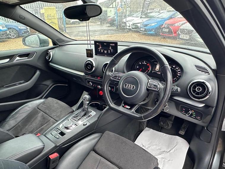 12V Power Socket - Centre Console, 12V Power Socket - Rear, 18in Alloy Wheels - 5-Parallel Spoke Design Partly Polished, ABS - Anti-Lock Braking System, AMI - Audi Music Interface, ASR - Anti Slip Regulation, Active bonnet, Adaptive Brake Lights, Air Vent Sleeves - Aluminium Look, Airbags - Driver, Airbags - Drivers Knee, Airbags - Front Passenger, Airbags - Front Side, Airbags - Head Level Side For Front and Rear, Alarm - Thatcham Category 1, Aluminium Interior Elements, Anti Theft Locking Wheel Bolts, Audi Drive Select, Car Jack, Chrome-Plated Exhaust Tailpipe Trim, Cloth Headlining in Black, Coat Hooks - B Pillar - Both Sides, Colour Drivers Information System - DIS, Cup Holders - Rear x2, Cup Holders - x2 in Centre Console, DAB Digital Radio, Daytime Running Lights, Display Screen Colour - 5.8in, Door Mirrors - Body Coloured with Integrated LED Indicators, Door Mirrors - Electrically Adjustable and Heated, Door Sill Trims with S Line Logo, Dual-Zone Electronic Climate Control, EBD - Electronic Brakeforce Distribution, EDL - Electronic Differential Lock, ESP - Electronic Stability Programme, Electric Windows - Front and Rear, Electromechanical Parking Brake, Electromechanical Power Steering, Exhaust Tailpipe - Twin, First Aid Kit, Fog Lights - High Gloss Black Surrounds, Front Centre Armrest, Front Fog Lights, Front Passenger Airbag Deactivation Switch, Front Sports Seats, Front and Rear Floor Mats, Gear Knob - Perforated Leather, Headlights - Automatic Dynamic Range Control, Headlights - Bi-Xenon Plus, Headlights Washers, Heated Rear Windscreen, Heated Windscreen Washer Jets, Height Adjustable Boot Floor, Hydraulic Brake Assist, ISOFIX Child Seat Mounting for Front Passenger and Rear Outer Seats, Illuminated Vanity Mirrors, Inlays - Matt Brushed Aluminium, Interior Lighting, LED Daytime Running Lights, LED Rear Indicators, LED Rear Lights, Luggage Compartment - Lashing Points x4, Luggage Compartment - Side Net, MMI Radio, Mobile Telephone Preparation - Bluetooth Interface, Model and Engine Technology Badges at Rear, Multi Collision Brake Assist, Preparation for SD Card-Based Navigation System, Radiator Grille - High Gloss Black, Rear Parcel Shelf Removable, Remote Central Locking with 2 Fold Away Keys, Rest Recommendation System, S Line Badges on Front Wings, S Line body styling, S Line Design Front and Rear Bumpers Side Grilles and Dffusers in Platinum Grey, S line Design Front Bumper-Rear Diffuser-Side Sills and Roof Spoiler, SDHC Card Reader x2, Seat Belt Reminder for All Seats, Seats - Convenience Entry - Enhanced Front Folding Function, Seats - Front Height Adjustment, Seats - Split Folding Rear - 60-40, Secondary Collision Brake Assist, Smoking Package, Space Saver Spare Wheel, Speakers x8, Sport Suspension, Steering Wheel - 3-Spoke Leather-Flat Bottomed-Shift Paddles, Steering Wheel - Height and Reach Adjustable, Steering Wheel - Multi-function, Storage Compartment Under Rear Seat, Storage Compartments in the Door Side Trims-Centre Console-Under Front Passenger Seat, Storage Net in Front Passenger Footwell and Front Seat Backrests, Storage and Luggage Package, Sun Visors - with Covered Vanity Mirrors, Tool Kit, Tyre pressure monitoring System, USB Connection, Voice Control - Navigation, Warning Triangle, Washer Fluid Level Indicator, Window Surrounds - Aluminium, Heated Front Seats, Cruise Control, LED Headlights, Bang and Olufsen Sound System, Rear-View Camera, Headlights - Adaptive with Xenon Plus, Privacy Glass, Aluminium Roof Rails, Adaptive Cruise Control including Pre-Sense Front, Satellite Navigation System - SD Card Based