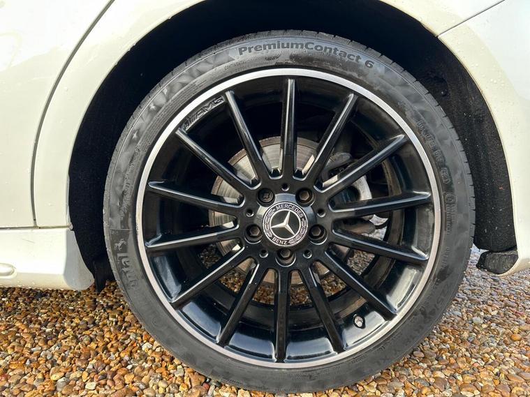 18in Alloy Wheels - AMG 5-Twin-Spoke Design - Painted in Titanium Grey with a High Sheen Finish, ABS - Anti-Lock Braking System with BAS - Brake Assist, AMG Bodystyling - Front and Rear Apron and Side Skirts, ATTENTION Assist, Active Bonnet - Pedestrian Safety Measure which Detects an Impact and Raises Bonnet by 65mm, Active Braking Assist, Adaptive Brake Assist with Hold Function and Hill Start Assist, Adaptive Brake Lights, Air Vents with Surround and Cruciform Nozzle in Silver Chrome, Airbags - Dual Stage - Driver and Front Passenger, Airbags - Head and Sidebags - Driver and Front Passenger, Airbags - Windowbags for Driver and Front Passenger, Alarm System with Immobiliser and Interior Protection - Thatcham Category 1, Ambient Lighting in Headrests and Interior Door Handles, Audio 20 Radio-CD-MP3 Compatibility, Automatic Child Seat Recognition Sensor, Beltline Strips - Chrome, Bodystyling - Side Skirts - Body-Coloured, Brake Calipers - Mercedes-Benz Lettering on Front, Brake-Pad Wear Warning Indicator, Brushed Stainless Steel Sports Pedals with Rubber Studs, Bumpers - Body Coloured, Centre Armrest - Front with Stowage, Childproof Locks - Manually Operated for Rear Doors and Electrically Operated for Rear Power Windows, Controller on Centre Console with Chrome Surround, Crash-Responsive Emergency Lighting, Cruise Control with Limiter, Cup Holder - Double - Front, Direct Select Shift Lever with Steering Wheel Shift Paddles, Direction Indicators with Lane-Changer Function, Door Handles - Body Coloured, Door Mirrors - Electrically Adjustable and Heated with Integrated LED Indicators, Drivers Kneebag, Dynamic Select with a Choice of Driving Modes - ECO-Comfort-Sport and Individual, ESP - Electronic Stability Programme with ASR - Acceleration Skid Control, ESP Curve Dynamic Assist, Electric Parking Brake, Electric Windows - 4, Electronic Key - Chrome Surround, Exhaust System - Twin Trapezoidal Tailpipes in Polished Stainless Steel, First Aid Kit and Warning Triangle, Floor Mats - Red Stitched Edging - AMG Lettering, Fluid Level Warning Indicator for Fuel - Oil - Coolant and Washer Fluid, Footwell Lighting - Front and Rear, Glass - Rear Windscreen - Heated with Timer Control, Glove Compartment - Illuminated, Headlamp Assist - Automatic Headlamp Activation, High Level Third Brake Light - LED, ISOFIX and Top-Tether Child Seat Fixing Points in Rear - Two Outer Seats, Illuminated Front Door Sills with Mercedes-Benz Lettering, Illumination - Storage Compartment, Instrument Cluster with Four Analogue Dials and Needles Suspended in Six-O-Clock Position, KEYLESS-GO Starting Function, Light Failure Indicator, Lighting in Stowage Compartment and Vanity Mirrors, Luggage Compartment Cover, Media Display - 8in, Media Interface, Mercedes Connect Me, Outside Temperature Gauge, Part LED Tail Lights, Power Steering - Sports Direct Steer System with Speed Sensitive Servo Assistance, Premium Package, Radiator Grille - Diamond with Pins in Chrome and Silver Louvre with Chrome Insert, Radio Aerial Roof Spoiler, Rain-Sensing Windscreen Wipers with Two Sensitivity Settings, Reading Lights and Console Light in Front and Rear, Rear Fog Light, Rear Seats - Split Folding 1-3 2-3, Rear View Mirror - Additional Lighting, Rear Windscreen Wiper, Remote Central Locking and Crash Sensor with Emergency Opening Function, Reversing Camera with Parking Guidelines - 180 Degree View, Roof Lining - Black, Seat Belts - Rear Three-Point - 3, Seat Belts Reminder - Front and Rear, Seat Comfort Package, Seat Occupancy Sensor - Front Passenger Seat, Seats - Front Cushion Length Adjustment, Seats - Front Manually Adjustable, Service Indicator ASSYST, Smartphone Integration, Sports Seats with Integrated Head Restraints, Steering Column - Manually Adjustable for Height and Reach, Steering Wheel - 3-Spoke Multi-Function - Trimmed in Leather with Perforated Leather in Grip Area and Flattened Bottom Section, Storage Compartment Beneath Load Compartment Floor, Suspension - Comfort - Lowered by 20mm Front and 15mm Rear, THERMOTRONIC Luxury Automatic Climate Control - Two-Zone with Display, TIREFIT Tyre-Sealant Kit, Trim - Carbon-Fibre Look, Trip Computer in Multi-Function Display, Tyre pressure monitoring System