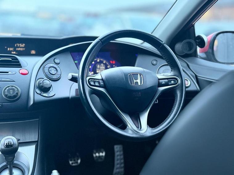 17in 7J 5-Spoke Alloy Wheels with 225/45 R17 Tyres and Locking Wheelnuts, 4 Speakers + Tweeters, 60/40 Split Folding Second Row Seats, Active Front Head Restraints and Three Rear Head Restraints, Anti-Lock Braking System (ABS) and Emergency Brake Assist, Body Coloured Bumpers, Central Locking, Centre Console, Centre Rear Seat Belt, Climate Control Air Conditioning, Deflation Warning System (DWS), Digital Clock, Driver SRS Airbag, Drivers Seat Height Adjustment, Dual Side SRS Airbags and Front and Rear Dual Curtain Airbags, Electric Power Assisted Steering, Electronic Brakeforce Distribution (EBD), Engine Start Button, External Temperature Gauge, Front Armrest and Rear Seat Centre Armrest, Front Ashtray, Front Cupholders, Front FogLights, Front Seat Belt Pre-Tensioners, Front and Rear ACC Socket, Front and Rear Electric Windows, Heated Rear Screen, High Level Rear Brake Light, Honda Superlocks (Deadlocks), ISOFIX Child Seat Restraint Mechanism, Illuminated Driver and Passenger Mirror with Lid in Sunshades, Illuminated and Refrigerated Glovebox, Instant Mobility System (IMS) Repair Kit, Leather Wrapped Steering Wheel, Multi-Function Driver Computer, Passenger SRS Airbag with Cut Off Switch, Perimeter Security Alarm, Power Adjustable and Heated Door Mirrors, Rear Boot Spoiler, Remote Keyless Entry, Rolling Code ECU Engine Immobiliser, Steering Wheel Mounted Audio Controls, Stereo CD Tuner with RDS and MP3 Compatibility, Aux Jack, Tilt and Telescopic Steering Wheel Adjustment, USB Port, Upholstery Leather - 1/2 Leather Upholstery, Vehicle Stability Assist (VSA)