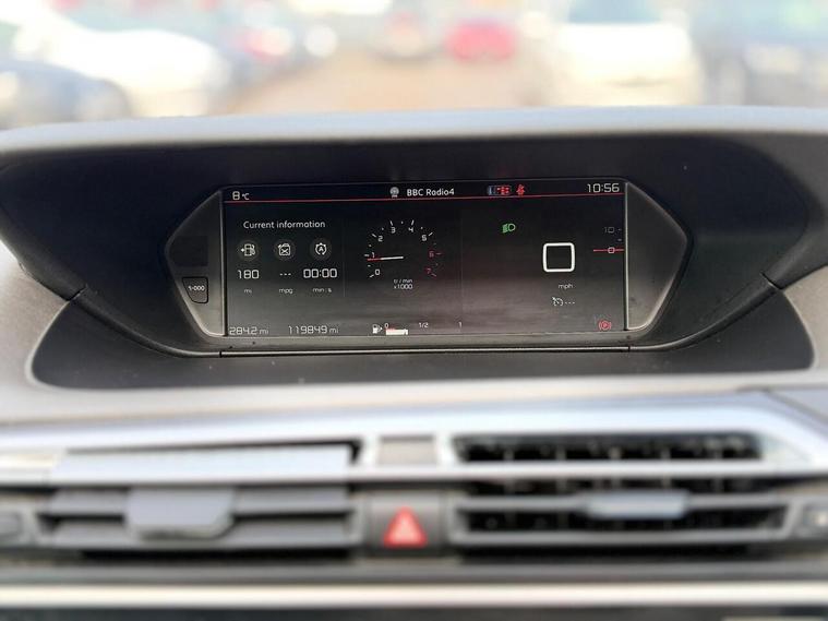 12 Volt Accessory Power Socket in Central Storage Compartment, 12in HD Panoramic Central Display, 17in Alloy Wheels - Boa, 3 Separate Full Size Rear Seats with Adjustable Recline Angle, 7in Touch Drive Interface, ABS with Electronic Brakeforce Distribution and Emergency Braking Assistance, Additional 12 Volt Sockets in Row 2 and Boot, Air Conditioning - Automatic Digital Dual Zone, Air Vents for Rear Seat Passengers, Alarm, Aluminium Dashboard Trim and Air Vent Surrounds, Aluminium Front Sill Scuff Protectors, Aluminium Side Profile with Integrated Roof Bars, Audible Warnings, Automatic Activation of Hazard Warning Lights, Automatic Electronic Parking Brake, Automatic Lights and Windscreen Wipers, Black Panel On-Off Instrument Lighting, Bluetooth Handsfree and Media Streaming with USB Socket, Body colour door handles, Boot light, Chrome Lower Front Bumper Insert, Citroen Connect Nav with Citroen Connect Box, Coffee Break Alert, Courtesy Reading Lights - Front and Rear, Cup holders, DAB Digital Radio, Door Mirrors - Body Colour Electrically Heated and Folding with LED Indicators, Door Mirrors - Kerb Lighting, Driver - Front Passenger - Front Lateral and Curtain Airbags, Drivers and Front Passengers Seat Adjustable Armrest, Electronic Stability Control, Fabric Load Cover, Find My Car Feature, Five 3-Point Inertia Reel Seatbelts, Fixed Centre Storage Box with Sliding Lid, Front Door Pockets with Bottle Holder, Front Fog Lights with Cornering Function, Front Inertia Reel Seatbelt with Pre-Tensioners and Force-Limiters, Front Parking Sensors, Front Passenger Seat - Flat Folding, Front and Rear Electric Windows with Anti-Pinch and One-Touch Operation, GEI - Gear Efficiency Indicator, Glove Box - Illuminated and Ventilated, Halogen Twin-optic Headlights, Head Restraints - Retractable Rear x3, Height and Reach Adjustable High Quality Leather Steering Wheel with 4 Control Zones, Hill Start Assist, Illuminated-Switchable Central Storage Compartment, Immobiliser, LED Daytime Running Lights, Lashing Eyes in the Boot, Mirror Screen, Panoramic Windscreen, Programmable Cruise Control with Speed Limiter, RDS Radio with 6 Speakers and AUX Socket, Rear ISOFIX Mounting Points, Rear Lights - 3D Effect, Rear Parking Sensors, Rear Underfloor Storage, Remote Central Locking with Deadlocks, Seats - Massage Function for Driver and Front Passenger, Seats - Rear with Individual Sliding Fore-Aft Adjustment, Service Indicator, Space Saver Spare Wheel, Start Button, Steering Wheel - Mounted Controls, Storage - Front Seat Back Pockets, Storage - Under Driver and Front Passengers Seat, Tilt and Height Adjustable Drivers Seat, Tilt and Height Adjustable Passengers Seat, Tinted Windscreen, Total Closure Mode, Tyre Pressure Monitor, Unfastened Seat Belt Warning for all Seats, Upper Dashboard - Two Tone Soft-Touch Effect, Variable Power Assisted Steering