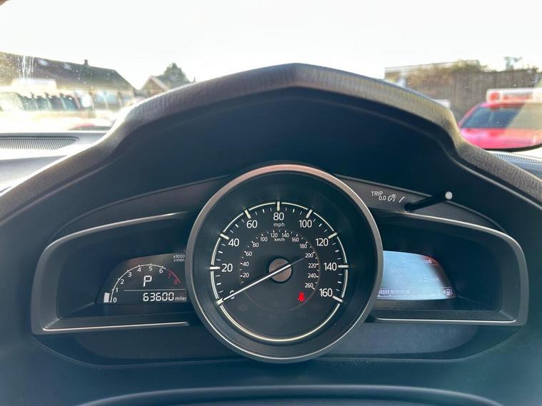 16in Alloy Wheels, 7in Colour Touch-screen Display, AM-FM-DAB Radio - Single CD Player-MP3 Audio System with 6 Speakers, Adjustable Speed Limiter, Aha App and Stitcher App Integration, Analogue Speedometer, Anti-lock Braking System with Electronic Brake-force Distribution and Emergency Brake Assist, Armrest - Front Centre with Slide Function, Auto Dimming Rear View Mirror, Auxiliary - AUX - and Two USB Input, Cruise Control with Manual Speed Adjustment, Dashboard Panel - Silver, Dome Interior Courtesy Light with Integrated Spotlight, Door Mirrors - Electrically Adjustable - Heated - Auto Power Folding with Integrated Indicator Lights, Driver and Front Passenger Airbags, Dual Chrome Exhaust Tailpipe, Dual-Zone Climate Control Air Conditioning, Dynamic Stability Control with Traction Control System, Electric Power Assisted Steering - EPAS, Electric Windows - Front and Rear with One Touch Auto Up and Down on Drivers Side, Electronic Parking Brake with Auto-Disengage Function, Emergency Stop Signalling System - ESS, Emergency Tyre Repair Kit, Engine Start-Stop Button, Front Fog Lights - LED, Front Passenger Airbag Cut-Off Switch, Front Passenger Seat - Manual Height Adjustment, Front Side Airbags, Front and Rear Curtain Airbags, Glovebox with Light, Grab Handles - Front Passenger and Two Rear with Coat Hooks, Halogen Daytime Running Lights, Head Restraints - Rear, Headlights - Coming-Leaving Home, Headlights - Dusk-Sensing Lights, Headlights - Halogen with Manual Headlight Levelling, Heated Front Seats with 3-Stage Settings, Hill Hold Assist, ISOFIX Child Seat Anchorage for Outer Rear Seats, Integrated Bluetooth, Leather-wrapped Gear Knob and Handbrake, Luggage Compartment - Light, Multimedia Commander, Privacy Glass - Rear and Rear Side Windows, Rain-Sensing Front Wipers, Rear Parking Sensors, Rear Seats - Centre Armrest with Two Cupholders, Remote Central Locking with Deadlocking, SKYACTIV-Body Engineered Triple H Body Structure to Help Protect Occupants from Impact Forces, Satellite Navigation System, Seatback Pocket - Rear of Front Passenger Seat, Seatbelts - Front 3-point - ELR - x2 with Pre-tensioners and Load-limiters - Height-adjustment, Seatbelts - Rear 3-point - ELR - x3 with Pre-tensioners, Seatbelts - Reminder Screen with Audible Warning, Seats - 60-40 Split Folding Rear, Seats - Drivers Manual Lumbar Adjustment, Seats - Drivers Manual Slide-Recline and Height Adjustment, Self-Supporting Rigid and Torsion-Resistant All-Steel Body with Defined Crush Zones for the Front and Rear Sections - Stable Passenger Safety Cell with Side Impact Reinforcement in the Doors, Shark Fin Antenna, Smart City Brake Support, Steering Wheel - Leather Wrapped, Steering Wheel - Mounted Audio and Bluetooth Controls, Steering Wheel - Telescopic and Tilt Adjust, Storage Spaces - Door Pockets, Storage Spaces - Front Centre Console with Two Cupholders, Storage Spaces - Inside Front Centre Armrest, Sun Visors - Drivers and Front Passengers, Sunglasses Holder, Thatcham Category 1 Alarm and Immobiliser, Trip Computer, Tyre pressure monitoring System, USB Audio - iPod Connectivity, Wipers - Front Adjustable Speed with Intermittent, Wipers - Rear Adjustable Speed with Intermittent
