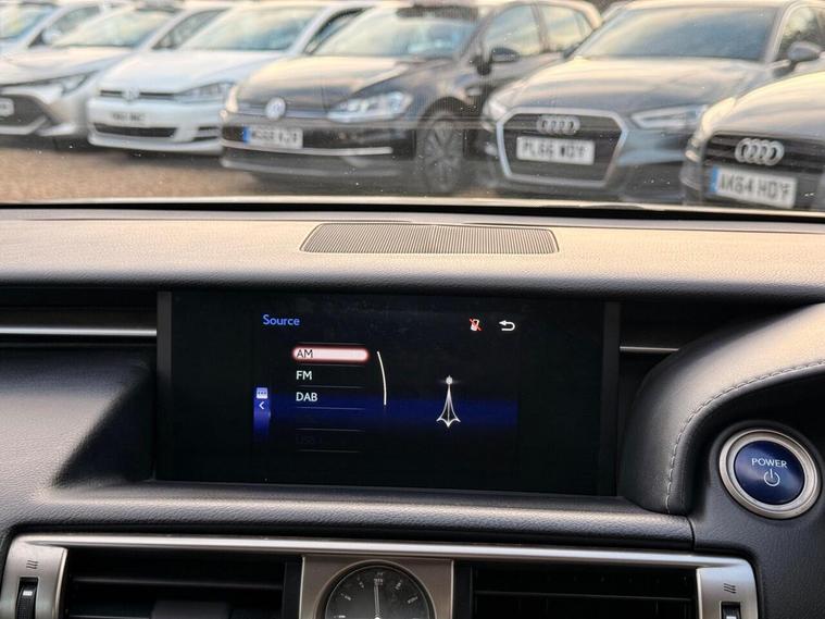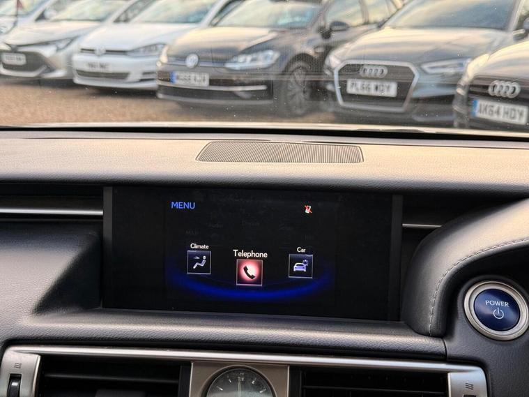16in Alloy Wheels, ABS - Anti-Lock Braking System, ASC - Active Sound Control, AUX Connection, Airbags - Curtain Front and Rear, Airbags - Driver, Airbags - Front Knee, Airbags - Front Side, Airbags - Manual Cut Off Switch, Airbags - Passenger, Airbags - Rear Passenger Side, Analogue Clock, Antenna in Rear Glass, Anti Theft System Alarm, Armrest - Front, BAS - Brake Assist System, Bluetooth Connectivity, Climate Control - Dual Zone, Colour Screen 7in, Cruise Control, DAB Radio, Daytime Running Lights - LED, Door Mirrors - Electrical Foldable - Heated, Door Mirrors - Puddle Lights, Driving Modes - Normal-Eco-Sport-Comfort-EV, EBD - Electronic Brakeforce Distribution, ECB - Electronically Controlled Braking, Electric Windows - Front and Rear, Front Fog Lights, Glove Box Insert - Black Gloss, HAC - Hill Assist Control, Headlights - Dusk Sensor, Headlights - HID Bi-Xenon, Headlights - Washers, ISOFIX Child Restraint System, Immobiliser, Leather Gear Stick, Lexus Display Audio - 1 CD, Multimedia Coordination Function, PUH - Pop Up Hood, Power Steering - Electric, Rear and Brake Light - LED, Remote Rotary Dial, Seats - Front Height Adjustment, Smart Entry and Start System, Speakers x6, Steering Column - Manual Adjustment, Steering Wheel - 3 Spoke Leather, Steering Wheel - Paddle Shift, TPWS - Tyre Pressure Warning System, TRC - Traction Control System, Tyre Repair Kit, USB Input, VDIM - Vehicle Dynamics Integrated Management, VSC - Vehicle Stability Control