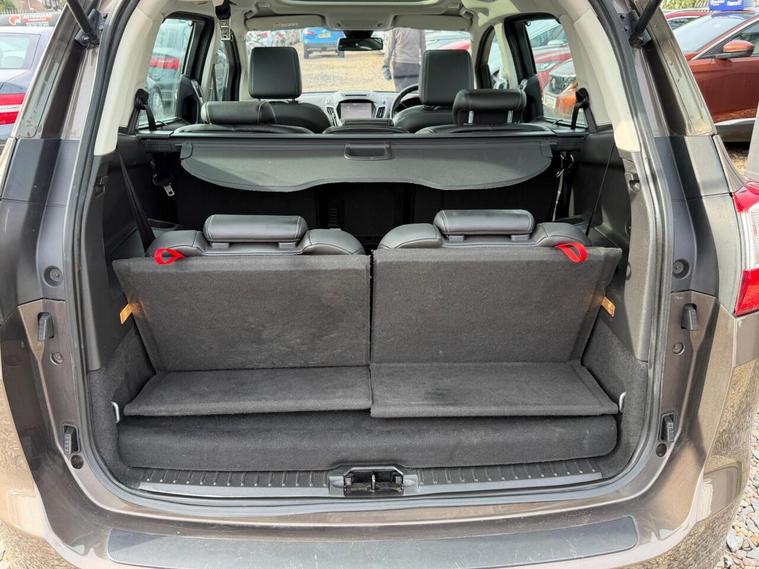 12V Power Socket - Front, 17in Alloy Wheels - 5x2 Spoke - Premium, ABS - Anti-Lock Braking System, Air Conditioning - Dual Zone Electronic Automatic Temperature Control, Airbags - Driver and Front Passenger, Airbags - Front and 2nd Row Curtain, Airbags - Side Impact, Alarm - Thatcham Category 1 with Volume Sensing and Perimeter, Automatic Dimming Rear View Mirror, Automatic Rain Sensing Wipers, Auxiliary Power Socket, Bi-Xenon Headlights, Brake Warning Lights - Automatic Flashing of Brake Lights Under Heavy Braking, Bright Finish on Upper Door Line, Centre Console - Sliding Armrest, Courtesy Light - Front and Rear - LED, Cruise Control with Speed Limiter, Door Handles - Body Colour, Door Mirrors - Heated - Electric - Auto Foldable - Integrated Side Indicators - Body Coloured, Doors - Sliding Rear Passengers, Drivers Seat Lumbar Support, EPAS - Electric Power Assisted Steering, ESP - Electronic Stability Programme, Electric Windows - Front and Rear - One Touch - Global Opening and Closing, Floor Mats - 2nd Row Rear, Floor Mats - 3rd Row Rear, Fog Light Bezel - High Gloss Black with Chrome Finish Surround, Ford Easy-Fuel Capless Refuelling System, Ford Eco Mode - Driver Information System, Ford Power Engine Start-Stop Button, Ford SYNC2 DAB Audio System, Front Fog Lights, Front Lower Grille - Self Colour, Front Seat - Passenger Manual Height Fore-Aft Adjustment, Front Seat - Passengers Manual Lumbar Support Adjustment, Front Seats - Height Adjustable Head Restraints, Front Upper Grille - High Gloss Black with Chrome Surround and Chrome Bar, Fuel Computer, Gearshift Knob - Leather, Glovebox - Illuminated, Headlights - Automatic, Headlights - Jet Wash, Heated Driver and Passenger Seats, IPS - Intelligent Protection System, ISOFIX - Child Seat Attachments, Interior Door Lever - Satin Chrome Finish, LED Ambient Courtesy Lighting, Locking Wheel Nuts, Mini Steel Spare Wheel, MyKey, Overhead Console - Sunglasses Holder, Panorama Roof, Parking Sensor - Rear, Power Rear Door Child Locks, QuickClear Heated Windscreen, Rear Seats - 3rd Row Outer Armrests, Rear Seats - 40-20-40 Split, Rear Seats - Two 3rd Row Individual Fold Flat Seats with Height Adjustable Head Restraints, Remote Central Locking, Scuff Plates - Front - Ford logo, Seats - Drivers Electric Adjustment, Steering Column - Rake and Reach Adjustment, Steering Wheel - 3 Spoke - Leather Trimmed, Tonneau Cover, Tyre pressure monitoring System