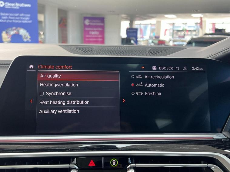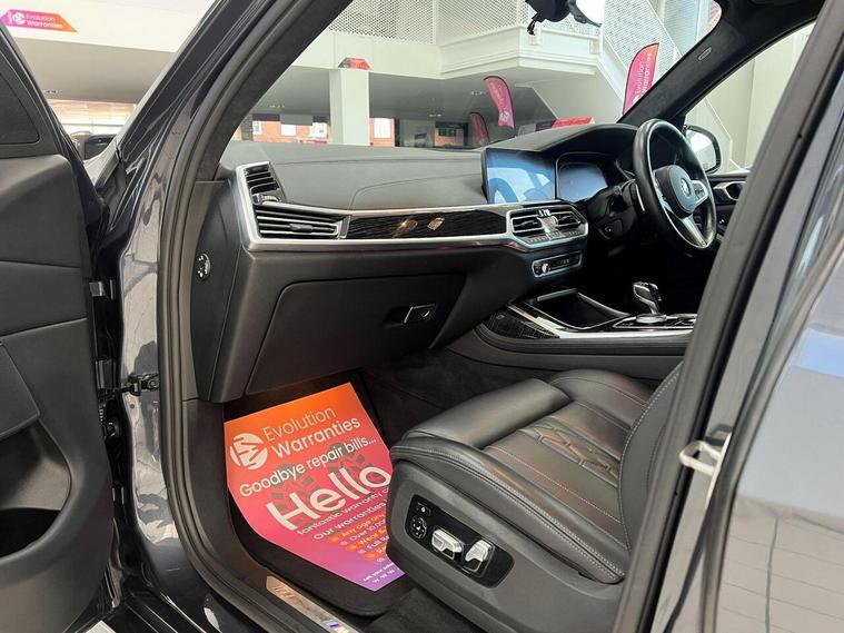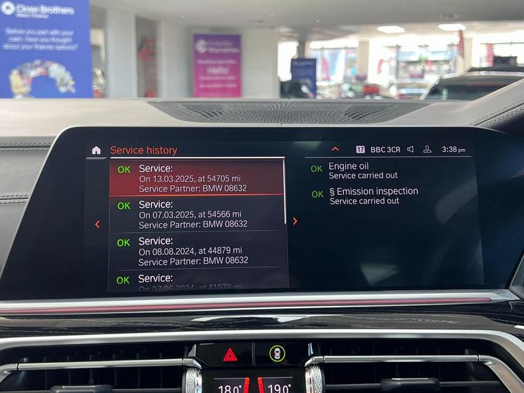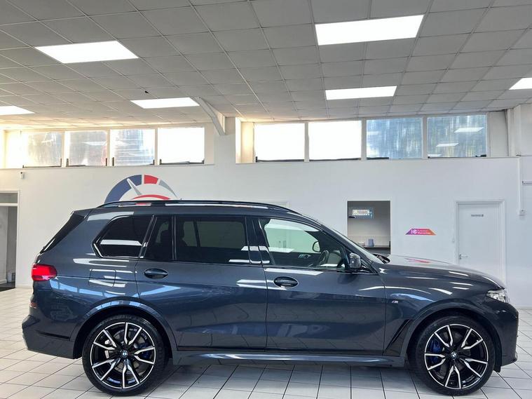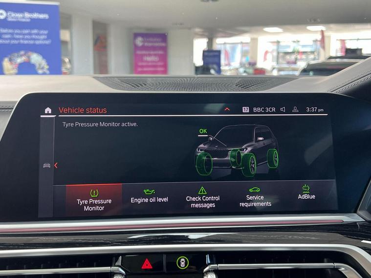 1 x USB A 1.5A in Cupholder - 1 x USB C 3A in Centre Armrest and 1 x Double USB C 3A in Rear End of Console for 2nd Seat Row, 20GB Hard Disc Drive HDD Memory, 21in Alloy Wheels - M Light Double Spoke Style 754M Bicolour, 7-Seat in 2 - 3 - 2 Configuration, Acoustic Glass, Active Air Stream Kidney Grille - High-Gloss Chrome, Active Guard Plus, Active Protection, Additional Storage Compartment, Air Conditioning - Automatic with Four Zone Control, Airbags, Alarm System - Thatcham 1 with Remote Control and Engine Immobiliser, Ambient Lighting, Armrests, Attentiveness Assistant, Automatic Start-Stop Button, BMW Connected Package Professional, BMW ConnectedDrive Services, BMW Emergency Call, BMW Head-Up Display, BMW Individual High-Gloss Shadowline, BMW Live Cockpit Professional, BMW TeleServices, Brake Force Display, Brake System, Brake-Pad Wear Indicator, Centre Lock Switch - Driver and Front Passenger Door, Child Seat ISOFIX Attachment - Rear Outer Seats in 2nd Row and Both Seats in 3rd Row - includes Top Tether, Closing System with Central Locking, Comfort Access, Comfort Cushion, Compartment in Front of Cupholder, Crash Sensor and Safety Battery Terminal Clamp, Cruise Control with Brake Function, Cup Holders - Front x2 and Rear x2, DAB Digital Radio, DSC - Dynamic Stability Control - Stabilises the Vehicle in Extreme Situations - Controls Traction, Daytime Running Lights - LED, Door Pockets - Front and Rear, Door Sill Finishers - M Designation, Door Sill Inlays - BMW M Designation Illuminated, Double-Wishbone Front Axle, Drive Performance Control - ECO PRO - Comfort - Sport and Adaptive Modes, Drive Recorder, Dynamic Brake Lights with LED Technology, EPS - Electric Power Steering with Servotronic, Electric Memory Seats, Electric Windows - Front and Rear, Electrical Steering Column with Adjustable Height and Length, Electro-Mechanical Parking Brake with Automatic Drive-Away Release and Auto-Hold Function, Exhaust Tailpipes - Single - Left and Right - Chrome, Expanded Exterior Mirror Package, Exterior Mirror Housing - Body Colour, Exterior Trim - High-Gloss Shadowline, Favourite Buttons, Floor Mats - Velour, Folding Side Mirrors with Auto-Dimming, Follow Me Home Headlight Function, Footwell Lights - Front, Front Comfort Seats, Front and Rear Air Suspension, Galvanic Embellisher for Controls, Gesture Control, Grab Handles, Headlights - Adaptive LED, Headlining - Anthracite Alcantara, Headrests - All Seats, HiFi Loudspeaker System, High-Beam Assistant, Instrument Panel in Sensatec, Interior Light - Rear Centre, Interior Mirror - Frameless, Interior Trim - Fineline Black Wood with Metal Effect, LED Fog Lights, LED Rear Lights, LED Third Brake Light - Spoiler, Leather Dashboard, Light Inside Glove Compartment, Lockable Glove Compartment, Locking Wheel Bolts - Thatcham Approved, Luggage Compartment Floor Panel with Integral Storage Tray, M Designation on Front Side Panels - Left and Right, M Specific Key, M Specific Pedals, M Specific Steering Wheel, M Sport Brakes with Blue Calipers, M Sport Braking System, M Sport Exterior Styling, M Sport Leather Steering Wheel, M Sport Package, Make-Up Mirror Lights, Mechanical Childproof Lock - Rear Doors, Microfilter and Active Carbon Filter, Multifunctional Hooks, OBC - On-Board Computer, Oil Sensor For Level and Grade, PDC - Park Distance Control - Front and Rear, Panoramic Glass Sunroof, Parking Assistant Plus, Passive Protection for Pedestrians, Power Sockets 12v - 2x Centre Console - 1x Luggage Compartment, Rain Sensor with Automatic Headlight Activation and Windscreen Wiper Control, Reading Lights - Front, Roof Rails - High-Gloss Shadowline, Run Flat Tyres, Seat Back with Flap Pocket, Seat Heating - Front and Rear, Seat Occupancy Detection for Driver and Passenger Side, Side Impact Protection, Soft Close Doors, Speed Limiting Function, Split Folding 2nd Row Seating with 40-20-40 Configuration, Sun Visors with Illuminated Vanity Mirrors, TPMS - Tyre Pressure Monitoring System, Tailgate Automatic - Two Part Top-Hinged Section Which Can Be Opened Separately, Tailpipe Finishers in M Sport Package-Specific Geometry, Third-Row Seating, Three-Point Seat Belts, Toolkit located in luggage compartment, Two Tone Horn, Warning Triangle, Welcome Light Carpet, Windscreen Washer Jets - Heated, X7 on Tailgate - Left, iDrive Touch Controller with Shortcut Buttons, xDrive and Engine Designation on Tailgate - Right