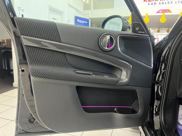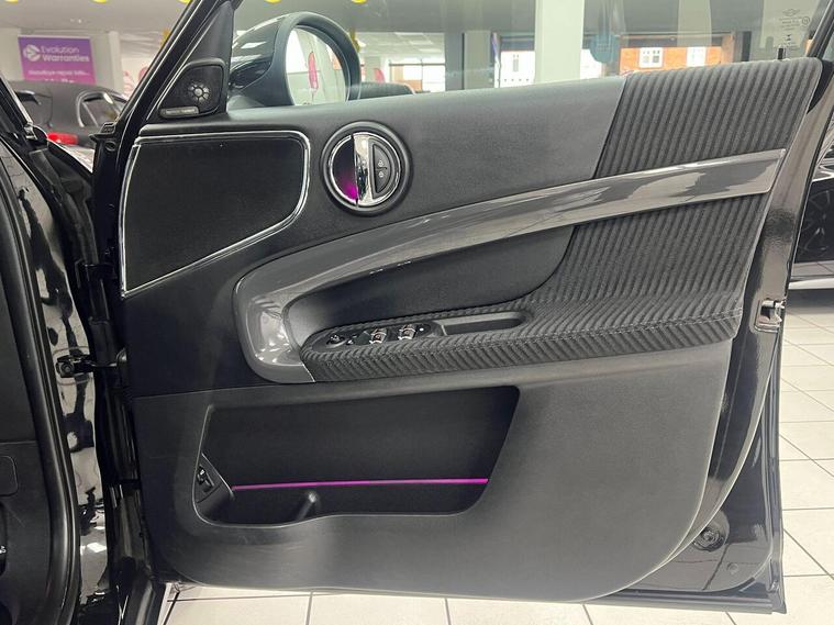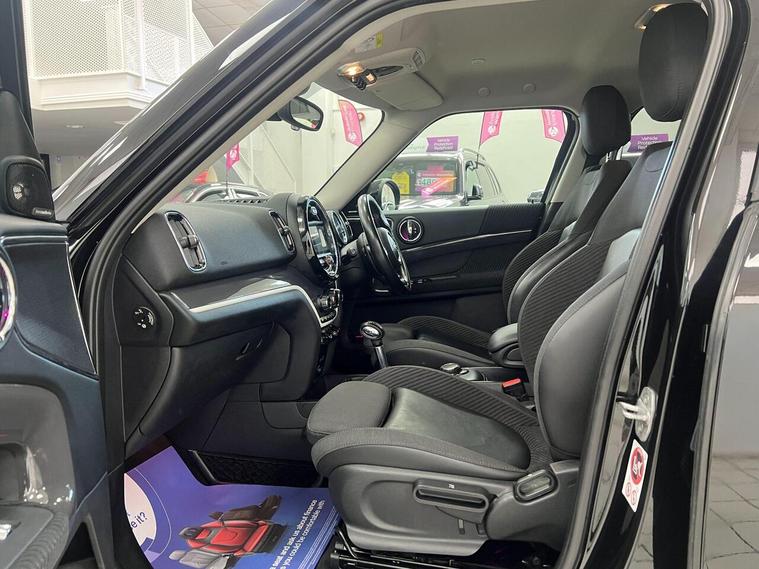 17in Alloy Wheels - Imprint Spoke, 3 point seatbelts on all seats, 3rd Brake Light, Air Conditioning - Manual, Airbags for Driver and Front Passenger, Alarm and Immobiliser - Thatcham CAT 1, Anti-Lock Braking System - ABS, Bluetooth Hands Free Function with USB Audio, Body Coloured Fuel Filler Cap in Rear Right Side Panel - Linked to Central Locking, Brake Pad Wear Indicator, Child Seat ISOFIX Attachment, Chrome Bezels around Rear Lights and Headlights, Colour Line - Carbon Black, Condition Based Service, Crash Sensor, Cruise Control with Brake Function, Cupholders - Two in Front, DAB Tuner, DTC - Dynamic Traction Control with EDLC - Electronic Differential Lock Control, Daytime Driving Lights, Decorative Rings Surrounding Round Instruments in Chrome Plated, Door Handles - Chrome Plated, Door Handles - Interior - Chrome Plated, Door Sill Finishers - Metal Look and Model Dependent Lettering, Dynamic Brake Lights and 3rd Brake Light in LED Technology in Roof Spoiler, Dynamic Stability Control - DSC, Electronic Parking Brake, Embellisher at Bottom Edge of All Windows - Chrome Plated, Engine Scoop in Body Colour, Exhaust Tailpipe - Visible - Twin - Round - Mounted in Left and Right with Chrome Finisher, Exterior Mirrors - Aspheric on Drivers Side - Electrically Adjustable, External Visible VIN, Floor Mats, Foldable Rear Backrest 40:20:40, Follow Me Home Function, Front Centre Armrest, Front Fog Lights, Front Passenger ISOFIX and Airbag De-Activation Switch, Fuel Pump Automatic Cut-Off in Crash Situation, Gearshift-Selector Lever and Handrake Lever Gaiters in Sensatec, Halogen Lights for Low Beam and High Beam Headlights, Headlight - Beam-Throw Control Electrical with Manual Adjustment, Headliner - Satellite Grey, Headrests For All Seats - Manually Adjustable, Heated Front Windscreen Washer Jets, Heated Rear Window with Automatic Deactivation, Heater with Mechanical Control and Recirculating-Air Button, Intelligent Emergency Calling - E-Call, Interior Light Pack, Interior Lights - Integrated into Centre Front Headliner and Centre Light in Headlining, Interior Mirror - Mechanical Anti-Dazzle, Interior Trim - Hazy Grey, John Cooper Works Leather Steering Wheel, Lashing Eyes in Luggage Compartment, Locking System with Central Locking, MINI Central Display with 6.5 Colour Touch Screen, MINI Central Display with LED Ring, MINI Connected, MINI Excitement Pack, MINI Mobility System, MINI Navigation System, MINI TeleServices, MINIMALISM Fuel Saving Technology, Mechanical Seat Adjustment for Drivers Seat and Passengers Seat, Microfilter, Mirror Caps in Body Colour, Model Logo Countryman in Chrome, Multifunction Controls for Steering Wheel, Multiple-Control-Arm Rear Axle, Non Smoker Package, On-Board Computer, PDC - Park Distance Control - Rear, Passenger Seat Height Adjustable, Performance Control, Personal Profile, Power Steering with Servotronic, Radiator Grille - Chrome Border with Honeycomb Structure in Matt Black with Red S Logo, Rain Sensor and Automatic Headlight Activation, Rear Fog Light, Rear window wiper, Revolution Counter, Roof Rails - Silver, Roof Spoiler Painted in Roof Colour, Roof in Body Colour, Security Locking Wheel Bolts, Side Scuttles Chrome-Plated with Red S Lettering with Integrated Direction Indicator White, Sills-Bumper Edges-Wheel Arches - Black with Model-Specific Bumper Trims, Single Joint Spring Strut Front Axle, Speakers - Four Mid Range in Front and Rear Doors and Two Woofers Under Front Seats, Speedometer on Steering Column, Sport Seats for Driver and Front Passenger, Start-Stop Button with Keyless Start, Steering Wheel Column Adjustment Mechanically in Height and Length, Storage Options in the Trim Panels of Each Front and Rear Side Panel as well as Centre Console, Sun Visors with Integrated Vanity Mirrors on Drivers and Passengers Sides, TPWS - Tyre Pressure Warning System, Tailgate Gas Struts Assist When Opening and Holding In An Opened Position, Tailgate Handle - High Gloss Black, Tool Kit in Luggage Compartment, Twin horns, Visual Boost Radio, White Indicators, Window Lifts Electrical