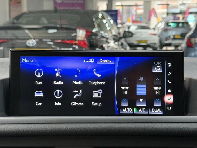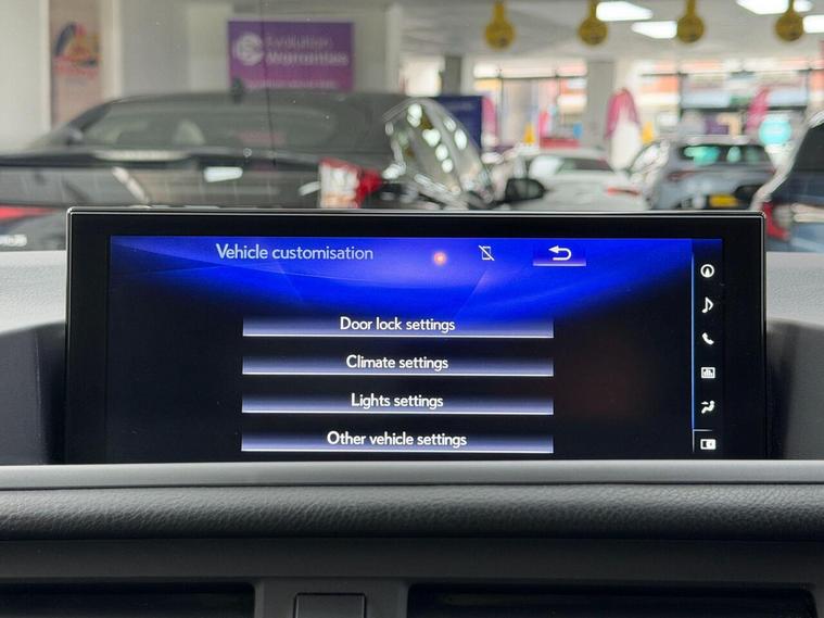 17in Alloy Wheels, 2-Way Electrical Lumbar Adjustment for Driver, 2x Coat Hooks in Rear, 2x Cup Holders in Centre Console, 2x Map Pockets in Rear of Front Seats, 2x Sun Visors with Vanity Mirror and Lamp, 2x USB Sockets, 4x Tie Down Hooks in Boot, ABS - Anti-Lock Braking System, AUX Socket with VTR Compatibility, Anti Theft System Alarm, Armrest - Front Centre with Storage, Auto Dimming Rear View Mirror, Autonomous Emergency Braking, BAS - Brake Assist System, Bluetooth Mobile Phone Connectivity, Card Holder in Drivers Sun Visor, Convenience Pack, Curtain Shield Airbags - Front and Rear, DAB Radio, Daytime Running Lights - LED, Drive Mode Select System, Driver and Front Passenger 2-Stage Airbags, Driver and Front Passenger Knee Airbags, Driver and Front Passenger Side Airbags, Driver and Passenger Door Pocket, Driving Modes - Normal - EV - Eco - Sport, Dual Zone Climate Control Air Conditioning System, EBD - Electronic Brakeforce Distribution, ECB - Electronically Controlled Braking, EPS - Electric Power Steering - Speed Sensitive, Front Seat Belts with Pre-Tensioners - 3 Point ELR - Emergency Locking Retractor, Front and Rear One-Touch Automatic Power Windows with Jam Protection, Headlight Cleaners, Heated - Auto-Folding - Auto-Dimming Outside Mirrors with Memory Function - Reverse Tilt Function - Turn Indicators and Puddle Light, Hill Assist Control 3, ISOFIX Child Restraint System - Rear x2, Inlays - Black Metal Film, LED Brake Lights and Rear Lights with Emergency Brake Signal, LED Front Fog Lights, LED Low Beam Headlights with Automatic High Beam - AHB, Lexus Premium Navigation, Lexus Safety System Plus, Locking Wheel Nuts, Manually Adjustable Leather Steering Wheel, Mark Levinson Sound System with 13 Speakers, Parking Sensors - 2x Front and 4x Rear, Passenger Airbag Cut Off Switch, Push Start Button, Rain Sensitive Windscreen Wipers, Rear Privacy Glass, Rear Spoiler, Reversing Camera, Scuff Plates - Aluminium, Seats - 60-40 Split Folding Rear, Seats - Drivers 8-Way Electric Adjustment, Seats - Drivers Memory, Seats - Front Heated, Seats - Passengers 4-Way Electric Adjustment, Smart and Easy Entry, Space Saver Spare Wheel, Storage Tray Under Deck Board in Boot, TPWS - Tyre Pressure Warning System, TRC - Traction Control System, Textile Carpet Mats, Two Motion Door Lock - Double Lock, VDIM - Vehicle Dynamics Integrated Management, VSC - Vehicle Stability Control, Window Etching