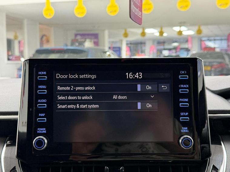 17in Alloy Wheels - Two-Tone Diamond Cut, 2-Ring Combimeters with Colour TFT Screen, 7in Colour TFT Multi-Information Display, 8in Touchscreen with MM19 Multimedia System, AM-FM Radio, Adaptive Cruise Control with Speed Limiter, Alarm and Immobiliser with Intrusion and Glass Break Alarm Sensors, Anti Lock Braking System - ABS with Electronic Brake-Force Distribution - EBD, Auto Dimming Rear View Mirror, Auto Folding - Door Mirrors, Auto Headlights, Automatic High Beam, BA - Brake Assist, Bluetooth Connectivity, Boot 12V Power Outlet, DAB Digital Radio, Dual-Zone Automatic Air Conditioning, E-Call, Electric Power Steering - EPS, Electronic Parking Brake, Front 12V Power Outlet, Front Fog Lights - LED, Front Passenger Airbag On-Off Switch, Front and Rear Parking Sensors, HAC - Hill Start Assist Control, Headlights - LED, Heated Seats, ISOFIX Fixing Points, Intelligent Park Assist, LED Daytime Running Lights, LED Rear Combinations Lights with LED Lightguide, Leather steering wheel and gear knob, MM19 with Go Navigation, One-Touch Power Windows, Pollen Filter, Power Lumbar Support, Privacy Glass - Rear, Push Button Start, Rain Sensing Wipers, Rear window wiper, Reversing Camera, Seat Belt - Pre-Tensioners and Force Limiters, Seat Belt Reminder - Front and Rear, Seatbelts - Adjustable Front Driver Seat Belt Extender, Shark Fin Antenna, Smartphone Integration - Apple Car Play and Android Auto, Speakers x6, Steering Column - Tilt and Telescopic, Steering Wheel Switches, Supplemental Restraint System - SRS - Airbags - 7 Airbags, Toyota Safety Sense, Traction Control - TRC, Tyre Repair Kit, USB and Aux In, VSC - Vehicle Stability Control, Wireless Remote Locking with Deadlocks