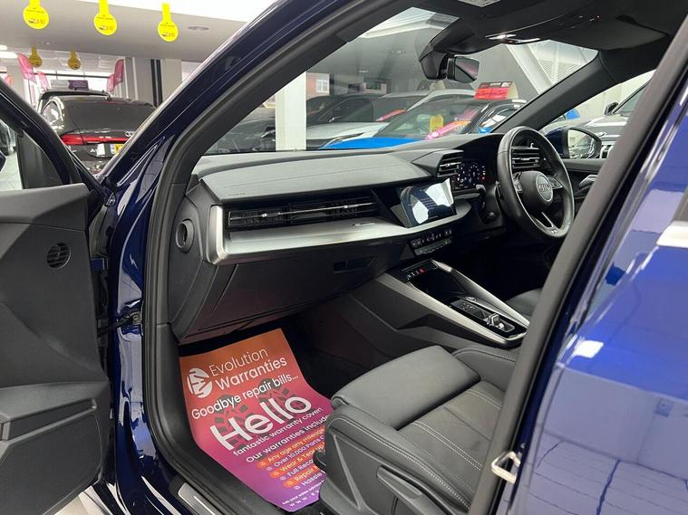 12v Socket and Storage Compartment in Front Centre Console, 18in Alloy Wheels - 5-Arm Dynamic Design, 2 USB-C Ports with Charge and Data Functions, 6 Passive Loudspeakers, Airbags - Driver and Front Passenger with Passenger Airbag Deactivation, Aluminium Interior Elements, Aluminium Window Trims, Anti Theft Locking Wheel Bolts, Anti-Theft Alarm, Audi Connect Emergency Call and Service, Audi Connect Navigation and Infotainment Services Plus (3 Year Subscription From New), Audi Drive Select, Audi Pre-Sense Front with Pedestrian and Cyclist Recognition, Audi Smartphone Interface, Audi Virtual Cockpit, Auto Dimming and Frameless Rear View Mirror, Automatic Start-Stop System with Recuperation, Bluetooth Interface, Body Coloured Door Mirrors, Cloth Headlining in Black, Collision Avoidance Assistant, Cruise Control, DAB Digital Radio, Dual-Zone Electronic Climate Control, ESC - Electronic Stabilisation Control inc ABS - ASR and EDL, Electric Windows - Front, Electromechanical Power Steering, Electronically Operated Child Locks, Emergency Call - E-Call, Exterior Mirrors - Electrically Adjustable - Heated and Folding - Automatically Dimming on Both Sides with Built-In LED Side Indicators - Including Automatic Kerb-Side Function for the Passenger-Side, First Aid Kit and Warning Triangle and 2 Safety Vests, Front Side Airbags with Head Airbags and Interaction Airbag, Front Sports Seats, Front and Rear Centre Armrest in Leather, Front and Rear Floor Mats, Hill Hold Assist, I-Size and Top Tether Child Seat Mounting for the Outer Rear Seats, Illuminated Door Sill Trims with Aluminium Inserts and S Logo, Inlays - Dark Spectrum Aluminium, LED Headlights with LED Rear Lights and Dynamic Rear Indicators, LED Interior Light Package, Lane Departure Warning, Light and Rain Sensor, Luggage Compartment Floor Covering, MMI Navigation Plus with High Resolution 10.1in Touchscreen Colour Display, Manual Boot Compartment Lid, Pedals in Stainless Steel and Footrest in Black, Privacy Glass, Privacy Glass - Dark-Tinted Rear Window - Rear Door and Side Window., Rear Parking Sensors, Remote Central Locking, S Line Bumpers, S Line Styling, S Roof Spoiler, Seat Belt Monitoring, Split-Folding Rear Seat Bench can be Split 40: 20: 40 or Fully, with Centre Armrest and Cup Holders, Steering Wheel - 3-Spoke Leather-Multi-Function, Tool Kit, Tyre Pressure Loss Indicator, Tyre Repair Kit, Voice Control System with Natural Language Interaction, Windscreen with Acoustic Glazing