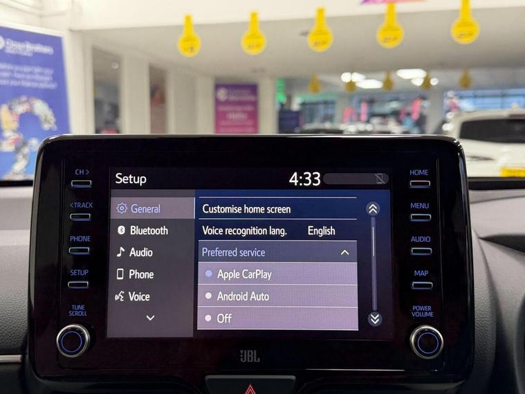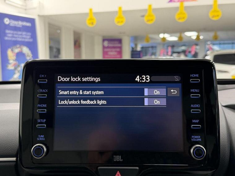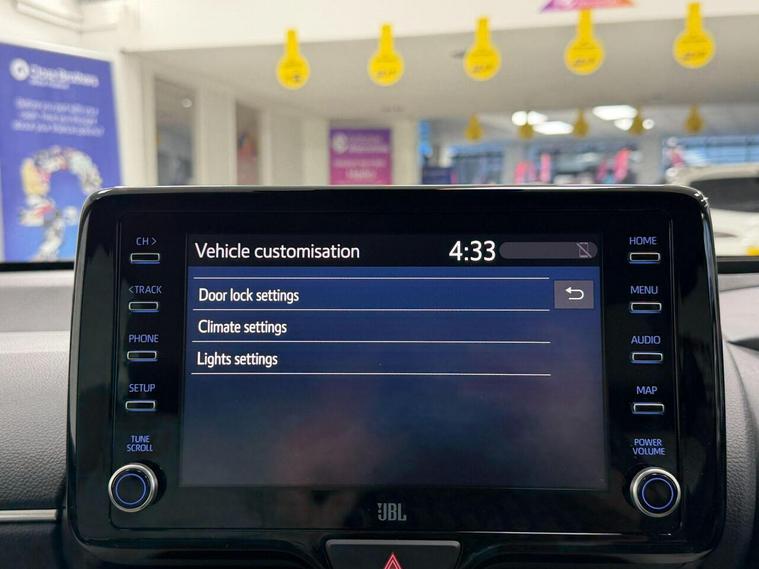 17in Alloy Wheels - Machined Face - Multi Spoke, 3-Spoke Leather Steering Wheel, 8in Multimedia Screen, ABS - Anti Lock Braking System, Acoustic Windscreen Glass, Active Headrests, Adjustable Boot Height - Two Level Floor, Adjustable Speed Limit with Speed Warning, Alarm and Immobiliser, Armrest - Front, Auto Windscreen Wipers, Automatic Headlights, Automatically Retractable Door Mirrors, Blind Spot Monitoring - BSM, Bluetooth Connectivity, Body Coloured Door Mirrors, Coat Hooks - Rear Grab Handles, Coloured Binocular-Inspired Display with Digital Speedometer, Cup Holders - 2 Front and Door, Data Communication Module, Daytime Running Lights - LED, Dual-Zone Automatic Air Conditioning, E-Call, Electric Power Steering - EPS, Electronic Parking Brake, Emergency Brake-Light System - EBS, Follow Me Home Headlights, Front Fog Lights - LED, Front Passenger Airbag On-Off Switch, Front Power Windows with Anti-Jam Function, Front and Rear Parking Sensors and Intelligent Clearance Sonar with Automatic Braking, Full LED Rear Lights, Glovebox, HAC - Hill Start Assist Control, Height Adjustable Driver Seat, Height Adjustable Passenger Seat, Hybrid Energy Display, ISOFIX Seat Fixing - Rear, LED Headlights, LED High Level Stop Light, Leather Gear Shift, Map Pocket - Back of Passengers Front Seats, Painted Front Grille, Pollen Filter, Power Remote Door Locking - Double Locking - Deadlock, Rear Power Windows with Anti-Jam Protection, Rear Privacy Glass, Rear Spoiler, Reversing Camera, Satin Lower Front Grille, Seat Belt Reminder - Front and Rear, Shark Fin Antenna, Shopping Bag Hooks, Smart Entry and Push-Button Start, Smartphone Integration including Apple Car Play and Android Auto, Soft-Touch Instrument Panel, Space Saver Spare Wheel, Speakers x6, Split Folding Rear Seats - 60-40, Sports Seats - Front, Steering Wheel Switches, Supplemental Restraint System - SRS with 8 Airbags, TPMS - Tyre Pressure Monitoring System, Tilt and Telescopic Steering Wheel Adjustment, Toyota Safety Sense 2, Toyota Touch 2 Multimedia System with DAB Radio, Turning Signal Integrated in Door Mirrors, USB Connectivity x3, VSC - Vehicle Stability Control