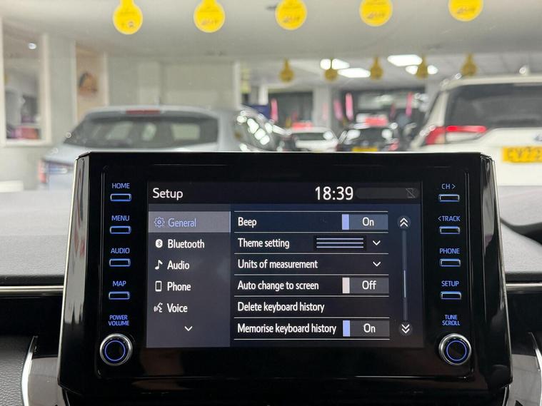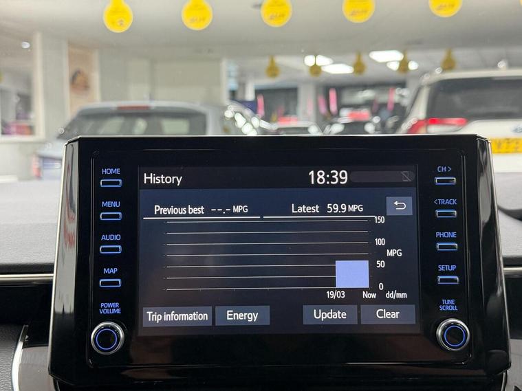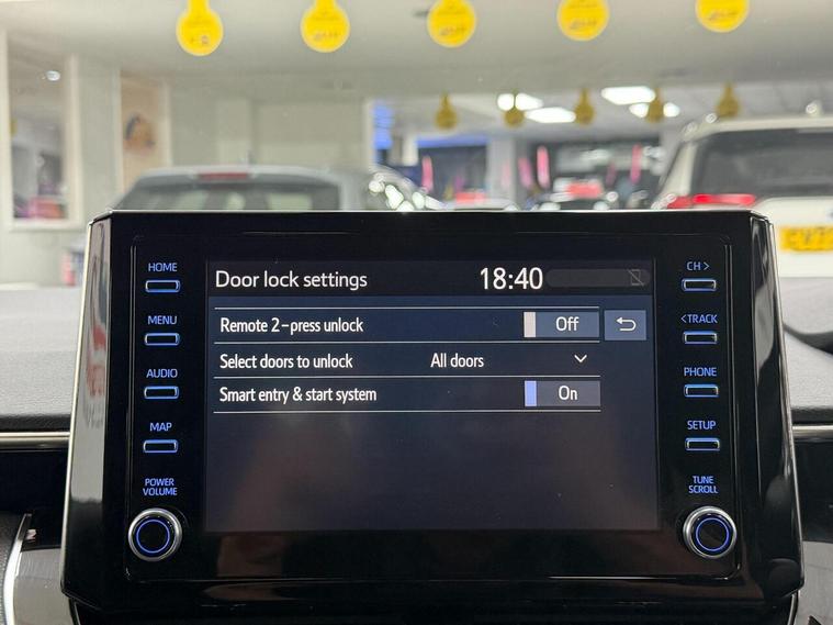 16in Alloy Wheels, 2-Ring Combimeters with Colour TFT Screen, 8in Touchscreen with MM19 Multimedia System, AM-FM Radio, Acoustic Vehicle Alert System - AVAS, Adaptive Cruise Control with Speed Limiter, Alarm with Motion Sensor and Immobiliser, Anti Lock Braking System - ABS with Electronic Brake-Force Distribution - EBD, Auto Headlights, Automatic High Beam, BA - Brake Assist, Bluetooth Connectivity, Boot 12V Power Outlet, DAB Digital Radio, Dual-Zone Automatic Air Conditioning, E-Call, EV Drive Indicator, Electric Power Steering - EPS, Electronic Parking Brake, Front 12V Power Outlet, Front Fog Lights - LED, Front Passenger Airbag On-Off Switch, Front and Rear Parking Sensors, HAC - Hill Start Assist Control, Headlights - LED, Heated Seats, Heated and Power Adjustable Door Mirrors, ISOFIX Fixing Points, Intelligent Park Assist, LED Daytime Running Lights, Leather steering wheel and gear knob, MM19 with Go Navigation, One-Touch Power Windows, Pollen Filter, Power Lumbar Support, Push Button Start, Rear window wiper, Reversing Camera, Seat Belt - Pre-Tensioners and Force Limiters, Seat Belt Reminder - Front and Rear, Seatbelts - Adjustable Front Driver Seat Belt Extender, Shark Fin Antenna, Smart Entry System, Smartphone Integration - Apple Car Play and Android Auto, Space Saver Spare Wheel, Speakers x6, Steering Column - Tilt and Telescopic, Steering Wheel Switches, Supplemental Restraint System - SRS - Airbags - 7 Airbags, Toyota Safety Sense, Traction Control - TRC, USB and Aux In, VSC - Vehicle Stability Control, Wireless Remote Locking with Deadlocks