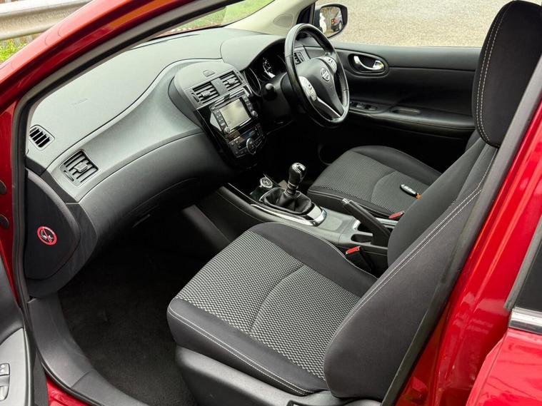 17in Alloy Wheels - Diamond Cut, 6 Speakers, 60-40 Split Rear Folding Seats, ABS - Anti Lock Brakes, AUX-IN Socket, Active Trace Control, Airbag - Driver, Airbag - Front Passenger, Airbags - Curtain, Airbags - Side, Alarm, Armrest - Rear, Auto Dimming Rear View Mirror, Auto Rain Sensing Wipers, Automatic Headlights - Dusk Sensor, Black Honeycomb Front Grille, Bluetooth Telephone Integration, Body Coloured Door Mirrors, Body Coloured Handles, Brake Assist, Bumpers - Body Coloured, Carbon Effect Rear Diffuser, Chrome Exhaust Finisher, Chrome Window Surrounds, Climate Control - Dual Zone, Cruise Control with Speed Limiter, DAB Radio, Daytime Running Lights, Display Screen - Colour TFT 5in, Door Mirrors - Electric Adjustment and Heated, Driver Seat Height Adjustment, EBD - Electronic Brakeforce Distribution, ESP - Electronic Stability Programme, Electric Speed-Sensitive Power Steering, Engine Start Button, Forward Emergency Braking, Front armrest, Front Fog Lights, Front and Rear Electric Windows, Gear Shift Indicator, Head Restraints - 3 Rear, Head Restraints - Front, Headlights - Darkened Bezel Sport, Headlights - Follow Me Home Function, Headlights - LED Signature, ISOFIX Child Seat Anchoring Points, Immobiliser, Intelligent Key, Leather gear knob, Leather Steering Wheel, Pollen Filter, Radio - CD Player, Rear Cupholder, Rear Door Child Locks, Rear Parking Camera, Rear Privacy Glass, Rear Spoiler, Satellite Navigation - Nissan Connect, Service Indicator, Sports Trim Finisher with Carbon Print Design, Steering Wheel - White Stitching, Steering Wheel Mounted Audio Controls, Superlocking, TPMS - Tyre Pressure Monitoring System, Tilt and Telescopic Adjustable Steering Wheel, Touch Screen - Colour 5.8in, Traction Control, Trip Computer, USB - iPod Connectivity, White Stitching on Gear Lever-Door Armrest and Seats