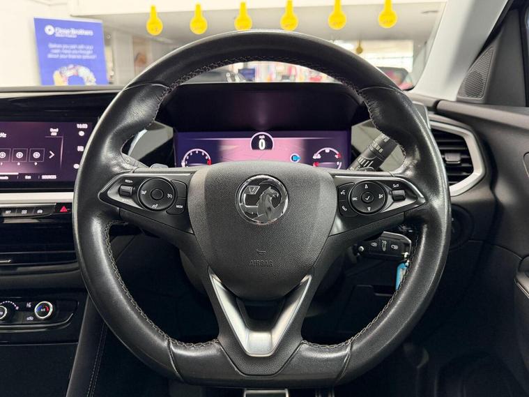 12V Electrical Accessory Socket, 12in Digital Instrument Cluster, 180 Degree Rear-View Parking Camera, 18in Alloy Wheels - 5-Spoke - High Gloss Black, 60-40 Split-Folding Rear Seat Back, ABS - Anti-Lock Braking System, Advanced Predictive Logic Control System, Airbags - Front Seat Side-Impact, Alloy Sports Pedals, Ambient Lighting Centre Console Downlighter, Ambient Lighting in Front Doors, Automatic Air Direction and Fan Speed, Automatic City Emergency Braking, Automatic Lighting Control, Automatically Dimming Anti-Dazzle Rear-View Mirror, Black Door Panels with Black Premium Leather-Effect Inserts, Black Side Window Trim, Body coloured door handles, Body-Colour Upper Front Bumper, CSC - Corner Stability Control, Carbon Black Lower Front and Rear Bumpers, Centre Rear Armrest, Charcoal Filter, Child Proof Locks on Rear Doors, Chrome Effect Interior Door Handles, Collapsible Windscreen Wiper System, Covered Storage Compartment in Centre Console and Drivers Armrest, Cruise Control with Speed Limiter, Dark Tinted Rear Windows, Dax Decor Facia Panel with Palladium Medium Finish, Deactivation Switch For Front Passengers Front and Side Impact Airbags, Deadlocking, Deflation detection System, Digital Central Facia Display, Digital Fuel Gauge with Low Fuel Level Warning Light, Digital Speedometer and Rev Counter, Digital Water Temperature Gauge with Warning Light, Door Mirror - Puddle Lights, Door Mirrors - Black, Door to Door Illumination, Driver Drowsiness System, Driver Information Display, Drivers Internal Central Locking Activation Switch, Drivers and Front Passengers Airbags, Drivers and Front Passengers Sunvisors with Illuminated Vanity Mirrors, Dual Seatbelt Pretensioners on Front Seats, Dual-Zone Electronic Climate Control, EBD - Electronic Brakeforce Distribution, Electric Parking Brake, Electrically Operated Front and Rear Windows with Safety Autoreverse and One-Touch Facility, Electronically Protected Audio Equipment, Engine Deadlock Immobiliser, Ergonomic Active Drivers Sports Seat - AGR-Approved, Freewheeling Door Locks, Front Door Pockets with 2.6litre Capacity, Full Size Curtain Airbags for Driver - Front Passenger and Outer Rear Seat Passengers, Fully Carpeted Luggage Area, Hazard Warning Lights, Headlights - High Beam Assist, Headlights - Manual Beam Levelling, High-Gloss Black Griffin for Vizor and Tailgate with High-Gloss Black Grandland Tailgate Lettering, High-Gloss Black Protective Front and Rear Skid Plates and C-Shape Bumper Insert, High-Level Centre Brake Light, Hill Start Assist, Hydraulic Brake Assist, Illuminated Luggage Area, Inertia-Reel Lap and Diagonal Seatbelts, Intermittent Rear Window Wash-Wipe, Isofix Compatible Child Seat Mountings Located on Front Passenger and Outer Rear Seats, LED Daytime Running Lights, LED Headlights, LED Tail Lights, Lane Keep Assist with Lane Departure Warning, Lights On Audible Warning, Load Limiters Outer Rear Seatbelt Retractors, Luggage Compartment Foldable Cover, Multi-Function Trip Computer, Multimedia Navi Pro System, Pretensioners on Outer Rear Seatbelt Retractors, Rain Sensitive Windscreen Wipers, Rake and Reach Adjustable Steering, Rear Door Pockets with 1.8litre Capacity, Rear Passenger Compartment Heating Ducts, Rear Reading Lights, Rear Spoiler, Remote Control Security Alarm System, Reversing Lights, Roof - Black, Roof Rails - High Gloss Black, Satellite Navigation Display, Seat - Front Passenger Sports, Shift - Up-Down Indication Light, Smart Seatbelt Reminder for Front and Rear Seats, Soundproofed Insulated Windscreen, Speed Sign Recognition, Speed-Sensitive Electric Power-Assisted Steering, Steering Wheel - Three-Spoke Design - Leather Covered - Satin Chrome-Effect Bezel, Steering Wheel Mounted Audio Controls, Switchable Electronic Stability Programme - ESP, Traction Control, Twin Electrically Adjustable - Heated Power Door Mirrors, Two Drinks Holders in Centre Console, Upper and Lower Bumper Design, Vauxhall Connect, Vizor Front Grille Bar, Welcome Lighting