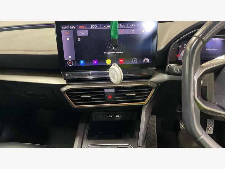 12V Socket in Front, 19in Alloy Wheels - Exclusive Machined Sport - Matt Black and Silver, 60-40 Rear Seats with Central Armrest and Mechanical Seat Release, ABS - Anti-Lock Braking System, Airbag on Driver and Front Passenger Side with Front Passenger Airbag Deactivation, Anti-Theft Alarm, Auto Dimming Rear View Mirror, Breakdown Kit, CUPRA Connect - Safety - Service - Remote and Online, Charging Cable - Mode 2 - 10amp, Charging Cable - Mode 3 - 16amp, Copper and Aluminium Interior Detailing, Daytime Running Lights with Automatic Headlight Control and Coming-Leaving Home Lights, Digital Cockpit and Configurable Dashboard, Door Mirrors Electrically Adjustable - Folding and Heated, Driver Alert System, Driving Profile Selection, Dynamic Headlight Range Control, Electric Window - Front, Electrically Adjustable - Folding and Heated Door Mirrors with Memory Function, Electronic Locking Differential with Dynamic Traction Support, Electronic Parking Brake, Forward Collision Warning with Automatic Braking, Front Centre Armrest, Front Fog Lights with Cornering Function, Front Side Curtain Airbag, Front and Rear Head Restraints, Gloss Black Roof Rails and Window Surrounds, Headlining - Grey, Isofix, Illuminated Interior Front Door Sills, Illuminated Sunvisor with Mirror, Kessy - Keyless Entry and Start, LED Headlight, LED Taillights with Dynamic Indicator, Lane Assist, Leather Multi-function Steering Wheel - Heated with Gear Shift Paddles, Leather Multifunction Steering Wheel, Locking Wheel Bolts, Navigation System, Park Assist - including Front and Rear Sensors, Power Steering, Predictive Adaptive Cruise Control with Speed Limiter, Rain Sensing Wipers, Reading Lights - 2x Front - 2x Rear, Rear Diffuser with Black Simulated Exhaust Pipes, Rear View Camera, Safety and Driving Pack M, Seat Belt Reminder, Smart Wraparound Interior Lighting, Three Zone Climate Control with Control Panel in the Rear, Tinted Rear windows, Tyre pressure monitoring System, USB Type C x4 - x2 Front and x2 Rear, Welcome Lights, Wireless Phone Charger