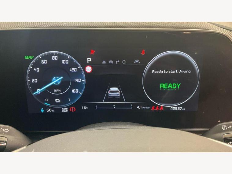 11KW On Board Charging System, 17in Alloy Wheels with Continental Tyres, 1x Front 12v Socket, 1x Luggage Compartment 12v Socket, 2x C-Type Charge Port on Front Seats, 2x Front USB Charge Ports - 1x Type C, 5 Seats, 6-Speaker Audio System, 60-40 Split Remote Folding Rear Seats, ABS - Anti Lock Braking System, Acoustic Film - Windscreen, Adaptive Smart Cruise Control with Stop and Go Functionality, Air Filter, Airbags - Driver, Airbags - Passenger, Alarm System and Engine Immobiliser, All-Round 3-Point Seatbelts, All-Round Electric Windows with Driver and Front Passenger Auto Up-Down Function Safety Function, All-Round Height Adjustable Headrests, Aluminium Pedals, Android Auto and Apple Carplay with Voice Control, Artificial Leather Steering Wheel, Artificial Leather Storage Console Box, Automatic Headlight Control, Automatic Windscreen De-Fog, BCA - Rear Blind Spot Collision Avoidance Assist, Backlight Glass with Timed Heater, Battery Heating System, Black Beltline Mouldings, Black and Chrome Radiator Grille, Bluetooth with Music Streaming, Body Coloured Bumpers, Body Coloured Outside Handle, Centre Console Cupholders, Centre Fascia - Metal Chopped Carbon, Centre Side Front Airbag, Deluxe Door Scuff Plates, Digital Clock, Door Deadlocks, Drive Mode Select - Eco-Sport, Driver Power Adjusted Memory Seat, Driver and Front Passenger Power Adjusted Seat, Driver and Passenger Sunvisors with Vanity Mirror and Illumination, Dual LED Headlights - Low and High Projection, Dual Shell Horn, Dual Temperature Control, E-Shift - Shift by Wire, ESC - Electronic Stability Control, Electrically Folding Door Mirrors, Electronic Parking Brake, Emergency Stop Signalling - ESS, Engine Start-Stop Button with Smart Entry System, Forward Collision Avoidance Assist - FCA 2.0 Car-Pedestrian-Cyclist-Junction Turning and Crossing, Free 7-year Kia Connect Services - UVO, Front Grille Charging Port, Front Parking Sensors, Front Passenger Airbag Cut Off Switch, Front Seatback Pockets, Front Seatbelt Height Adjusters, Front and Rear Chrome Skid Plates, Front and Rear Door Storage, Gloss Black Cladding, Glovebox with Illumination, Head-Up Display -TFT-LCD, Heated Front Seats and Rear Outer Seats, Heated Steering Wheel, High Gloss Door Mirrors, Highway Driving Assist - HDA 2.0, Hill-Start Assist Control - HAC, ISOFIX Child Seat Top Tethers and Anchor Fixings, Impact Sensing Auto Door Unlocking, Inside Door Handle - Chrome Coating, Integrated 10.25in TFT Cluster with 10.25in Touchscreen Display with Navigation, Intelligent Speed Limit Assist - ISLA, Interior Door Lock-Unlock Function, Knee Airbag - Driver, LED Daytime Running Lights, LED High Middle Stop Light, Lane Follow Assist - LFA, Lane Keep Assist System - LKAS, Locking Wheel Nuts, Low Washer Fluid Warning, Luggage Area Load Cover, Luggage Board, Lumbar Support - Driver - Power Aircell Type, Lumbar Support - Passenger - Power Aircell Type, Motor Driven Power Steering - MDPS, Overhead Console - 2nd Row with Luggage Lamp - LED, Parking Collision Avoidance Assist - PCA, Passenger Premium Relaxation Seat, Rain Sensor, Rear Console Ventilation Duct, Rear Fog Light, Rear LED Lights, Rear Parking Sensors, Rear Privacy Glass, Rear Seat Alert, Rear Spoiler, Remote Smart Park Assist - RSPA 1.0, Reversing Camera with Dynamic Guidelines Integrated into Centre Fascia Screen, Roof Rails, Side and Curtain Airbags, Smart Power Opening Tailgate, Solar Windscreen, Steering Wheel - Paddle Shift, Steering Wheel Mounted Audio Controls, TMK - Tyre Mobility Kit, Tilt and Telescopic Steering Wheel Adjustment, Tilting and Sliding Power - One Touch - Sunroof, Trip Computer, Type 2 to Type 2 Charger - 5m Cable Length, Tyre Pressure Monitoring System - TPMS, Vehicle - 2-Load, Ventilated Front Seats, Visible Vehicle Identification Number - VIN, Wireless Phone Charger