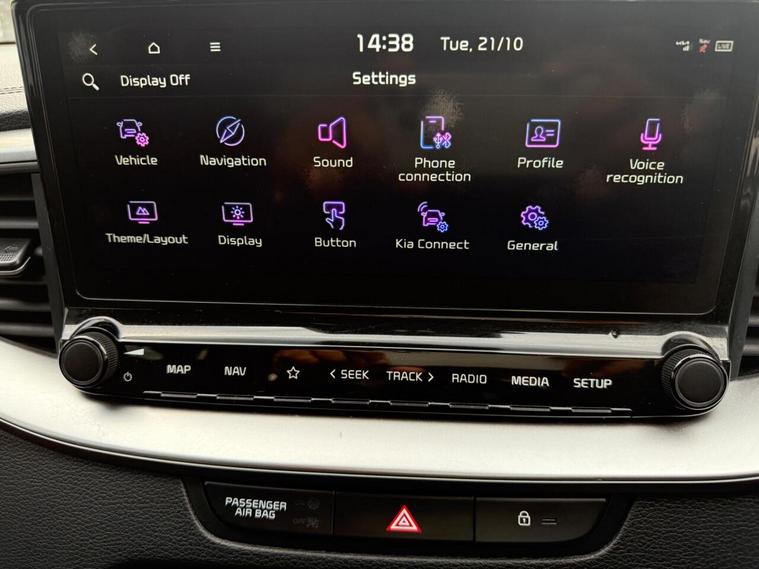 10.25in Touchscreen Satellite Navigation with Telematics, 12V Power Socket - Front Centre Console x2, 16in Alloy Wheels, 3 x Passenger Assist Grips, 3.5in Supervision Cluster Display, 6-Speaker System, 60-40 Split Folding Rear Seats, ABS with Electronic Brakeforce Distribution - EBD and Brake Assist System - BAS, Air Conditioning, Alarm System, All-Round 3-Point Seatbelts, All-Round Electric Windows with Driver and Front Passenger Auto Up-Down Function, All-Round Height Adjustable Headrests, Android Auto with Voice Control, Apple CarPlay with Voice Control, Automatic Headlight Control, Bluetooth with Voice Recognition and Music Streaming, Body Coloured Bumpers, Body Coloured Door Mirrors, Body Coloured Exterior Door Handles, Body Coloured Rear Spoiler, Centre Console Armrest with Storage Box, Centre Console Cupholders, Child Safety Rear Door Locks, Chrome Window Surrounds, Cloth Door Centre Trim, Coat Hooks - Rear, Cruise Control with Speed Limiter, Cupholders in Rear Armrest, DAB Radio with MP3 Compatibility, Dash Illumination Dimmer Switch, Door Handles - Interior - Silver Finished, Driver Attention Warning - DAW, Drivers Seat Height Adjuster, Dual Height Luggage Floor, ESC - Electronic Stability Control, Electrically Adjustable and Heated Door Mirrors, Emergency Stop Signalling - ESS, Engine Immobiliser and Deadlocks, Forward Collision-Avoidance Assist - City, Front Cabin Map Light with Sunglasses Case, Front Fog Lights, Front Passenger Airbag Cut Off Switch, Front Seatback Pockets, Front Seatbelt Height Adjusters, Front and Rear Door Storage, Gear Shift Indicator, Handbrake - Leather Trimmed, Headlights - High Beam Assist - HBA, Heated Rear Window with Timer, High Gloss Black Radiator Grille, Hill-Start Assist Control - HAC, ISOFIX Child Seat Top Tethers and Anchor Fixings, Ignition Keyhole Illumination, Impact Sensing Auto Door Unlocking, Interior Door Lock-Unlock Function, Kia Connected Services Featuring TomTom, LED Daytime Running Lights, LED High Mounted Brake Light, Lane Keeping Assist - LKA, Leather Trimmed Steering Wheel and Gearshift, Light Grey Headlining, Locking Wheel Nuts, Luggage Area Light, Luggage Area Parcel Shelf, Luggage Compartment - Hooks, Motor Driven Power Steering - MDPS, Projection Headlights with Cornering Lights, Rear Centre Armrest, Rear Lights - LED, Rear Wiper-Washer, Remote Central Door Locking with Fold-Away Key, Reversing Camera System with Dynamic Guidelines, Roof Rails, Seatbelt Reminder Warning, Silver Finish Fascia Trim, Speed Sensing Auto Door Locking, Steering Wheel Mounted Audio Controls, Sunvisors with Vanity Mirror Illumination and Ticket Holder - Driver and Front Passenger, TMK - Tyre Mobility Kit, Tilt and Telescopic Steering Wheel Adjustment, Tinted Glass, Trip Computer, Twin Curtain Airbags, Twin Front Airbags, Twin Side Airbags - Front, Tyre Pressure Monitoring System - TPMS, USB Fast Charger - Front Centre Console, USB Port for Connection of a Media Device, USB Ports Illumination, Windscreen Washer Level Warning