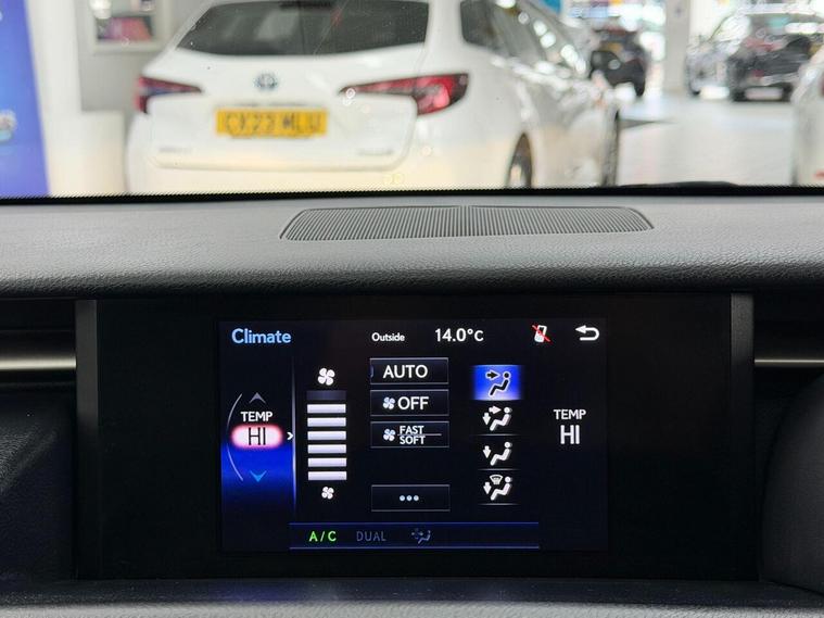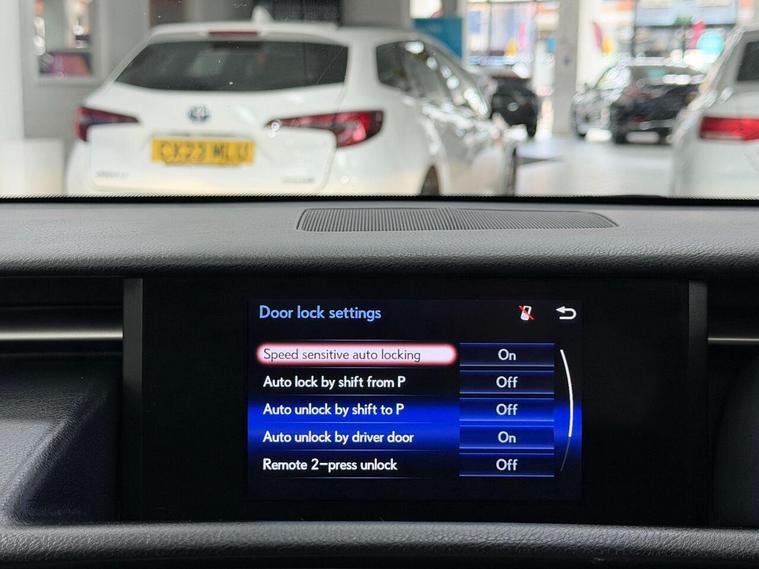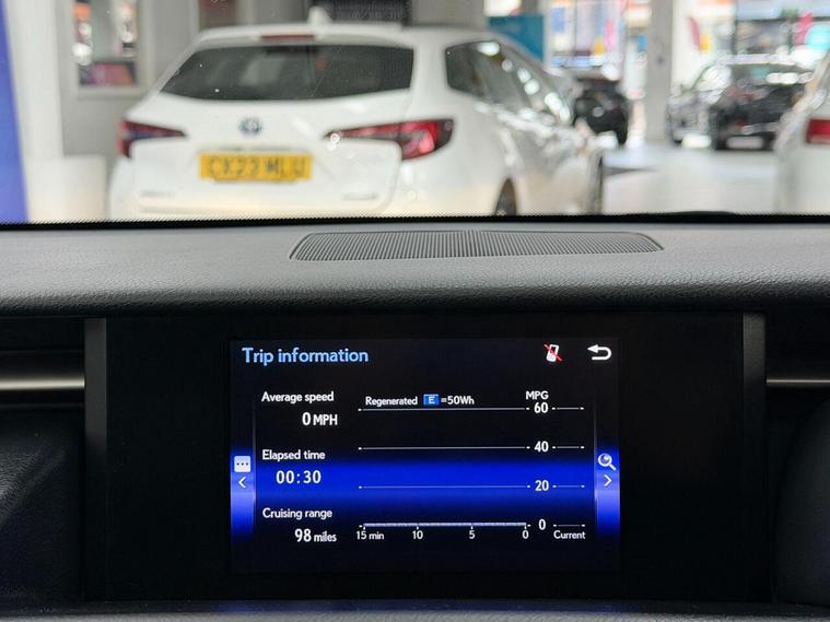 16in Alloy Wheels, ABS - Anti-Lock Braking System, ASC - Active Sound Control, AUX Connection, Airbags - Curtain Front and Rear, Airbags - Driver, Airbags - Front Knee, Airbags - Front Side, Airbags - Manual Cut Off Switch, Airbags - Passenger, Airbags - Rear Passenger Side, Analogue Clock, Antenna in Rear Glass, Anti Theft System Alarm, Armrest - Front, BAS - Brake Assist System, Bluetooth Connectivity, Climate Control - Dual Zone, Colour Screen 7in, Cruise Control, DAB Radio, Daytime Running Lights - LED, Door Mirrors - Electrical Foldable - Heated, Door Mirrors - Puddle Lights, Driving Modes - Normal-Eco-Sport-Comfort-EV, EBD - Electronic Brakeforce Distribution, ECB - Electronically Controlled Braking, Electric Windows - Front and Rear, Front Fog Lights, Glove Box Insert - Black Gloss, HAC - Hill Assist Control, Headlights - Dusk Sensor, Headlights - HID Bi-Xenon, Headlights - Washers, ISOFIX Child Restraint System, Immobiliser, Leather Gear Stick, Lexus Display Audio - 1 CD, Multimedia Coordination Function, PUH - Pop Up Hood, Power Steering - Electric, Rear and Brake Light - LED, Remote Rotary Dial, Seats - Front Height Adjustment, Smart Entry and Start System, Speakers x6, Steering Column - Manual Adjustment, Steering Wheel - 3 Spoke Leather, Steering Wheel - Paddle Shift, TPWS - Tyre Pressure Warning System, TRC - Traction Control System, Tyre Repair Kit, USB Input, VDIM - Vehicle Dynamics Integrated Management, VSC - Vehicle Stability Control
