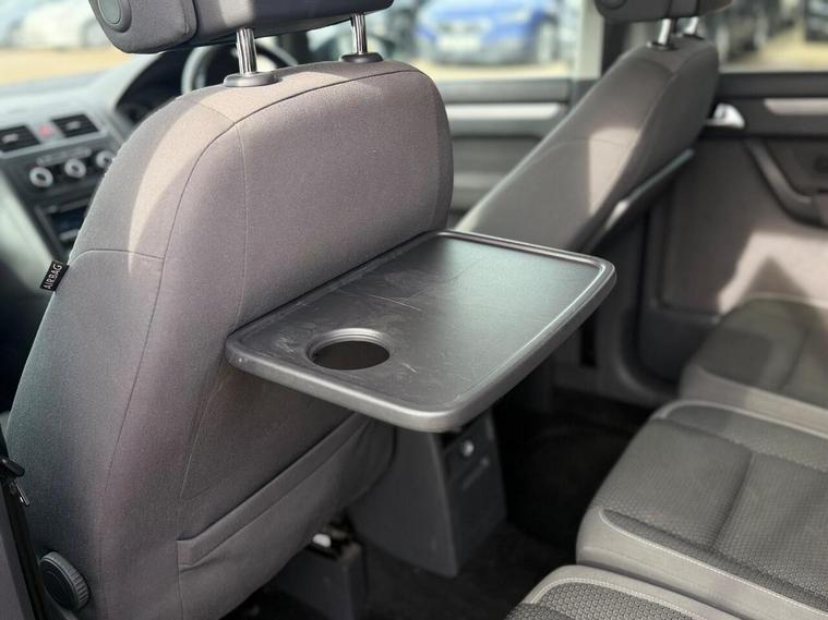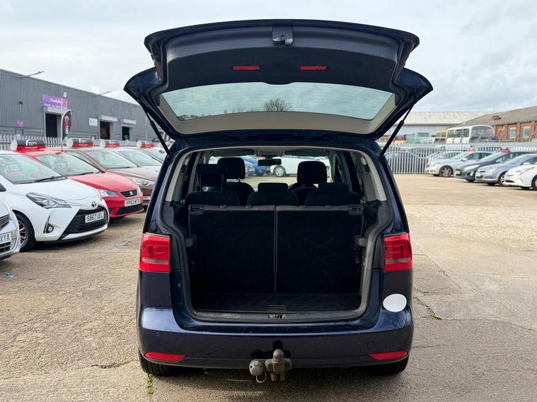 12V Socket - 2nd Row Seats, 12V Socket - 2nd Row Seats and Luggage Compartment, 12V Socket - Front, 12V Socket - Luggage Compartment, 16in Alloy Wheels - Cleveland, 2 Single Seats in the 3rd Row - Can Be Folded Flush into Floor of Luggage Compartment, ABS - Anti-Lock Braking System, ASR - Anti Slip Regulation, Air Conditioning - Electronically Controlled, Airbags - Curtain Front and Rear, Airbags - Driver, Airbags - Front Passenger, Airbags - Front Passenger with Deactivation Switch, Airbags - Front Seat Side Impact, Alarm with Interior Protection, Anti-Theft Wheel Bolts, Armrest - Front Centre with Storage Compartment, Automatic Dimming Rear View Mirror, Black Front Air Intake and Radiator Grille, Bluetooth Telephone Preparation for Hands Free Profile Enabled Telephones, Body Coloured Bumpers, Body coloured door handles, Body-Coloured Door Mirrors with Integrated Indicators, Central Locking - Remote with 2 Remote Keys, Chrome-Plated Radiator Grille Louvre Inserts, Cruise Control, Cup Holders - Front x2, DAB+ - Digital Radio Reception, Differential Lock - Electronic, Door Mirrors - Electrically Adjustable and Heated, Door Trims - Body Coloured, Drivers Seat Height Adjustment, Dust and Pollen Filter, ESP - Electronic Stability Programme, Electric Windows - Front and Rear, Electronic Engine Immobiliser, Electronic Odometer and Trip, Exterior Temperature Gauge, Folding Table on Back of Front Seats, Front Passengers Seat Height Adjustment, Front Seat Back Storage Pockets, Glovebox - Illuminated - Lockable, HBA - Hydraulic Brake Assist, Head Restraints - Front 4-Way Adjustment, Head Restraints - Front Whiplash Optimised, Head Restraints - x2 3rd Row, Head Restraints - x3 2nd Row, Headlights - Coming-Leaving Home Function, Headlights - Halogen Clear - Range Adjustable, Height and Reach Adjustable Steering Column, High Level 3rd Brake Light, Hill Hold Assist, ISOFIX Child Seat Preparation - Outer Seats of 2nd Row, Interior Light Delay, Lights on Warning Buzzer, Load Lashing Points x4 in Luggage Compartment, Locking Wheel Bolts, Luggage Compartment Cover - Retractable, Luggage Compartment Light, MDI - Multi Device Interface with USB - iPod Connection Cables, Multifunction Computer - includes Visual Gear Change Recommendation, Multiple Storage Compartments in Passenger and Luggage Areas, Park Assist including Parking Sensors Front and Rear, Parking Sensors - Front, Parking Sensors - Rear, Power Assisted Steering - Speed Sensitive, RCD 310 Radio System, Rain Sensor, Reading Lights - Front x2, Reverse Gear Selection Activates Rear Screen Wiper, Roof Rails - Anodised Chrome Finish, Seatbelt Reminder, Seats - Centre of 2nd Row - Foldable With Table Function, Seats - Foldable and Removable Single x3 in Row 2, Seats - Front Comfort, Seats - Front Lumbar Support, Service Interval Display, Speakers x8, Steering Wheel - 3-Spoke - Leather Trimmed - Multifunction, Steering Wheel - Multifunction, Storage Compartment in Front Doors, Storage Compartment in Rear Doors, Storage Compartment in Roof Console, Sun Visors - Illuminated Mirrors, Three-Spoke Steering Wheel, Tinted Glass - Heat Insulating Rear 65 Percent Light Absorbing from B Pillar Backwards, Trim - Interior - Iridium, Tyre Pressure Indicator, Tyre Repair Kit, Under Seat Drawers - Front, Unique BlueMotion Technology Badging, Warning Triangle
