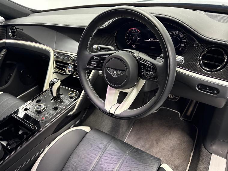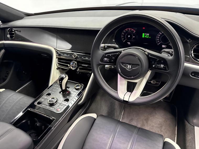 Bentley Belfast are delighted to offer for sale this September 2025 registered company demonstrator Flying Spur 4.0 V8 First Edition Speed, which comes with a phenomenal level of spec and with the Bentley approved and endorsed ''Akrapovic Titanium'' exhaust system - highlighting the ultimate combination of luxury and performance. This First Edition example is finished with Bentley's Mulliner Anthracite Satin paint, combining superbly with the Speed Split interior Beluga and White leather specification. This is the most impressive Flying Spur First Edition we have ever offered for sale, with over £90, 000 of Bentley options. The Anthracite Satin combines brilliantly with the exterior Carbon Fibre Styling Specification and the 22"Ten Spoke Swept black wheels, self levelling wheel centre badges and Flying Spur Blackline spec. Switch on the ignition system and the gloss black illuminated Flying B mascot magically raises from the front bonnet radiator system. This new 4.0 V8 Hybrid Speed 772 bhp is the most powerful engine ever designed by Bentley in Crewe and with the addition of the Bentley approved Akrapovic exhaust system, it is sharper and more acoustically tuned, to resonate a sound symbolically associated with the race track and Bentley's exploits at Le Mans. All wheel drive ensures superb traction, handling ability and safety, combined with air suspension and four driving modes, so you can appreciate and enjoy every scenario - however engage Sport mode for a more responsive gear change and acceleration, combined with our Akrapovic exhaust and which epitomizes the perfect driving experience! The Flying Spur is associated with perhaps the most desirable sedan or saloon car being built in the world to-day. Open the driver's door and appreciate the exquisite luxury of the 3 D diamond quilted door cards, which also extend to the diamond quilted seats, highlighting the attention to luxury and detail. We have contrast stitching and seat seat piping, as well as an Aluminium Tint / Carbon Fibre colour - match to the interior veneer. The iconic Bentley Rotating Display incorporates traditional dials, or flips over to the modern MMI screen which houses your Apps, highlighting Bentley's approach to modern technology. You may never hear the ultimate sound system, until you listen to our Naim for Bentley - creating the most powerfully resonant, balanced and crystal clear acoustics you will ever have the pleasure of experiencing. We will also include the balance of the Bentley factory warranty until September 2028 as well as the three free services as part of the deal. To request your personalised video presentation, please call either Richard or Kieron to Bentley Belfast on 02895882131. Local airport collections can be facilitated and delivery to any part of the UK or Ireland can be arranged with dealer staff.