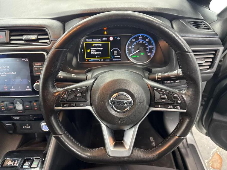 The 2020 Nissan Leaf 110kW Acenta 40kWh 5dr Auto is a smart, fully electric hatchback that combines smooth performance with low running costs. Its 40kWh battery delivers responsive 110kW power and an impressive real-world range ideal for daily commuting or city driving. The Acenta trim offers great value, featuring satellite navigation, Apple CarPlay and Android Auto, a rear-view camera, keyless start, climate control, and advanced driver assistance systems including Intelligent Emergency Braking and lane departure warning. With zero tailpipe emissions and exemption from many urban charges, it’s economical and environmentally friendly. The spacious five-door design, generous boot capacity, and quiet automatic drive make it practical and comfortable for families or professionals alike, while Nissan’s proven electric technology ensures reliability and peace of mind.