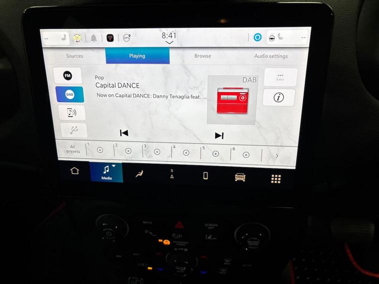 10.1in Uconnect DAB Touchscreen Infotainment with Navigation 12V Auxiliary Power Outlet Centre Console 2nd Row Fully Functional USB Port 3 Rear Headrests - Height Adjustable 6-Way Manual Driver Seat - 4-Way Manual Passenger Seat ABS - Anti-Lock Brakes AVAS - Acoustic Vehicle Alerting System Active Grille Shutter