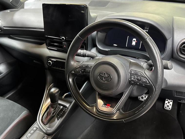 The Toyota Yaris GR Sport is a dynamic and sporty variant of the popular Yaris, blending everyday practicality with racing-inspired design. Drawing influence from Toyota's Gazoo Racing heritage, it features a bold exterior with a distinctive mesh grille, gloss black accents, GR badging, and striking 18-inch alloy wheels. Under the hood, it houses a responsive 1.5-litre self-charging hybrid engine, delivering smooth performance and excellent fuel efficiency. The GR Sport benefits from a sport-tuned suspension, enhancing handling and road feel for a more engaging drive. Inside, the cabin features GR-branded sports seats, red stitching, and a leather-wrapped steering wheel for a premium, athletic feel. The 8-inch multimedia display supports Apple CarPlay and Android Auto, while Toyota Safety Sense offers advanced driver assistance features. Compact, fun to drive, and economical, the Yaris GR Sport offers the perfect balance of everyday usability with a sporty edge and sharp styling. For over 100 years, Charles Hurst Toyota has been Northern Ireland’s trusted name for new and used Toyotas. Every car is Toyota Approved, prepared by our expert Toyota-trained technicians, and our pre-owned vehicles come with a 12-month Toyota Warranty—ensuring complete peace of mind with every drive.