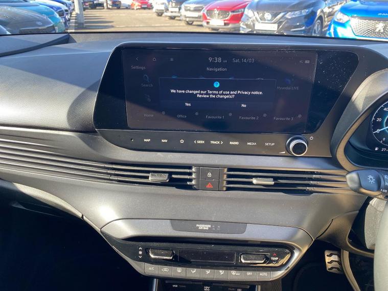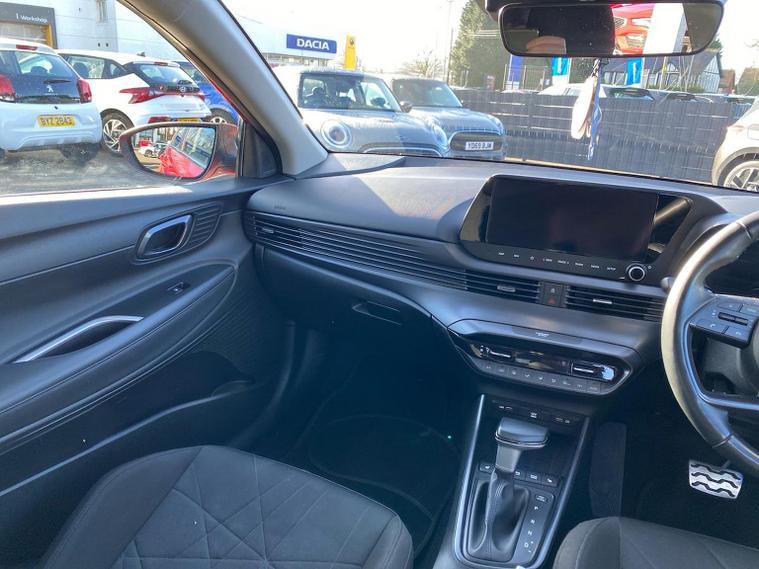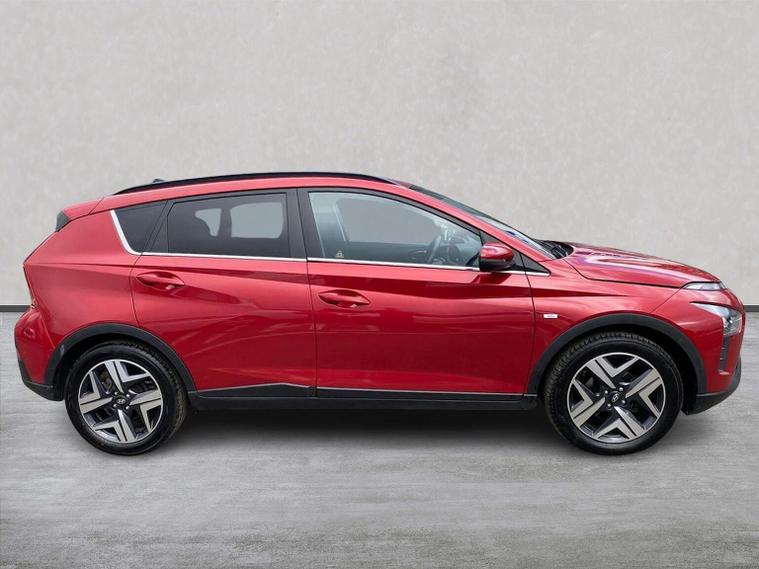Experience the latest in compact SUV innovation with the updated 2024 Hyundai Bayon Premium, a vehicle that delivers efficiency and style in equal measure. This model features the refreshed 2024 design, offering sharp aesthetics and enhanced features. Power comes from a highly economical 1.0-litre turbocharged petrol engine integrating 48-volt mild-hybrid (MHEV) technology, ensuring exceptional fuel economy and lower emissions (Euro 6 compliant). Paired with the smooth 7-speed Dual Clutch Transmission (DCT), you get a seamless, responsive drive tailored for both city agility and motorway comfort. The Premium trim is generously specified, ensuring a first-class experience: enjoy the fully digital 10.25-inch instrument cluster, a matching 10.25-inch touchscreen navigation system with wireless Apple CarPlay and Android Auto, a wireless phone charging pad, and advanced LED headlights. Safety is paramount, featuring Smart Cruise Control, Lane Following Assist, and Forward Collision-avoidance Assist. With its spacious interior, elevated driving position, and remaining balance of Hyundai's 5-year warranty, this Bayon is the definitive smart choice for the modern driver.