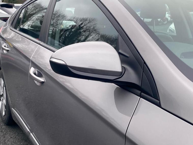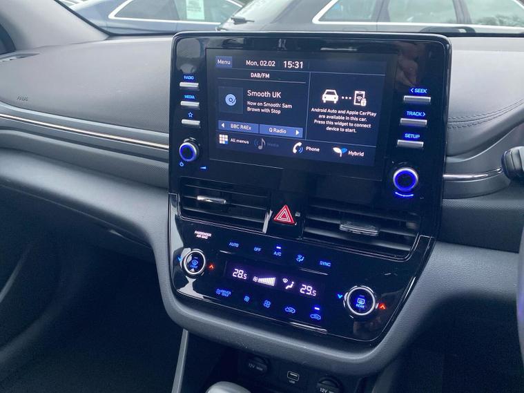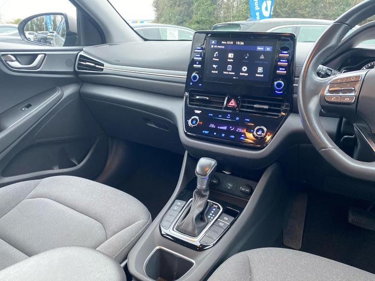 2021 Hyundai IONIQ Premium SE HEV (Hybrid Electric Vehicle) S-A — the top trim level of the standard hybrid IONIQ in the UK. This covers powertrain, performance, equipment, comfort, safety and technology, based on available UK spec and typical trim content for this model. Overview The 2021 Hyundai IONIQ Hybrid Premium SE HEV S-A is a plug-in style hybrid hatchback blending a conventional petrol engine with electric assistance to maximise efficiency, low emissions and everyday usability. Positioned near the top of the IONIQ range, the Premium SE spec adds a broad suite of comfort, tech and safety features over lower trims. It is well-suited to buyers seeking efficient commuting and family-friendly equipment without sacrificing refinement. Powertrain & Performance Engine: 1.6 litre Atkinson-cycle petrol engine paired with an electric motor powering the front wheels. Transmission: 6-speed dual-clutch automatic (semi-auto) – slick and efficient for smooth power delivery. Combined Output: Around 139 PS (103–104 bhp) system power. 0–62 mph: , 10.8 seconds (HEV; typical of top trim Hybrid). Top Speed: , 110–115 mph. Fuel Economy: Around the high-70s mpg (WLTP combined) thanks to hybrid efficiency. CO2 Emissions: Low emissions class, making it cheap to tax and ideal for lower running costs. The hybrid system lets the IONIQ operate on electric power at low speeds and in light traffic for short distances, while the petrol engine contributes during harder acceleration or longer journeys. Exterior Highlights The Premium SE trim adds styling and convenience touches over base SE/Premium models: 17? alloy wheels (usually larger, sportier design). Chrome exterior door handles and window surrounds for a more premium look. Rear privacy glass and automatic rain-sensing wipers. LED daytime running lights and modern aerodynamic styling cues. Interior & Comfort Features Standard equipment on the 2021 Premium SE includes a comprehensive set of comfort and convenience features: Leather seat trim with heated and ventilated front seats and heated rear outer seats. Electric driver’s seat with memory function for multiple driver profiles. Heated steering wheel (leather wrapped), dual-zone climate control and premium materials throughout. Large touchscreen infotainment (often 10.25? depending on model year) with embedded navigation. Apple CarPlay and Android Auto (subscription-free) plus wireless charging pad for devices. Smart adaptive cruise control with stop-go function for relaxed motorway driving. These premium touches set the SE trim apart from lower IONIQ models, offering a more luxurious feel. Safety & Driver Assistance As a top-spec hybrid hatch, Premium SE also includes a wide suite of safety systems as standard: Blind Spot Detection (BSD) with warnings when cars are in adjacent lanes. Rear Cross Traffic Alert (RCTA) to help when reversing out of parking spaces. Autonomous Emergency Braking (AEB) and Driver Attention Alert. Lane Keepin