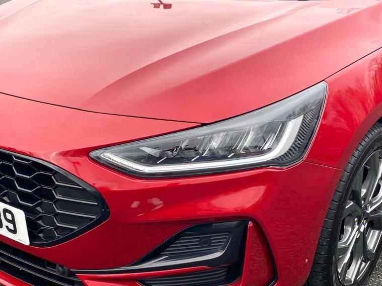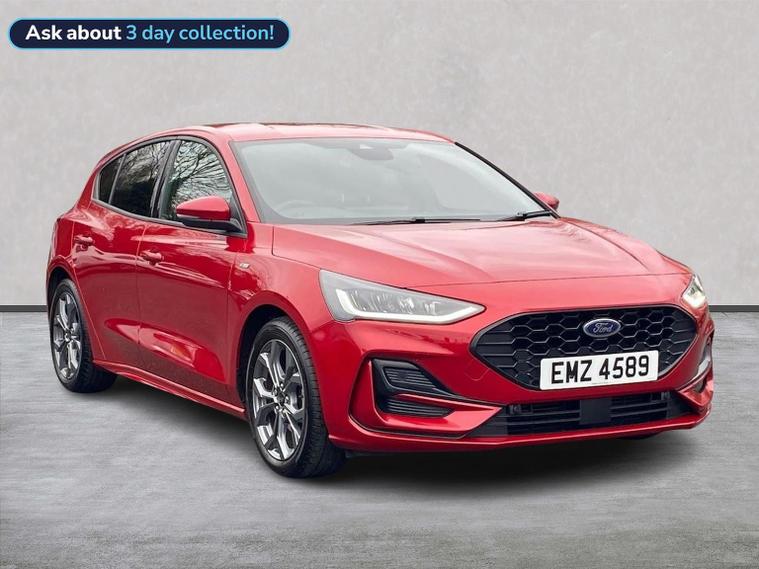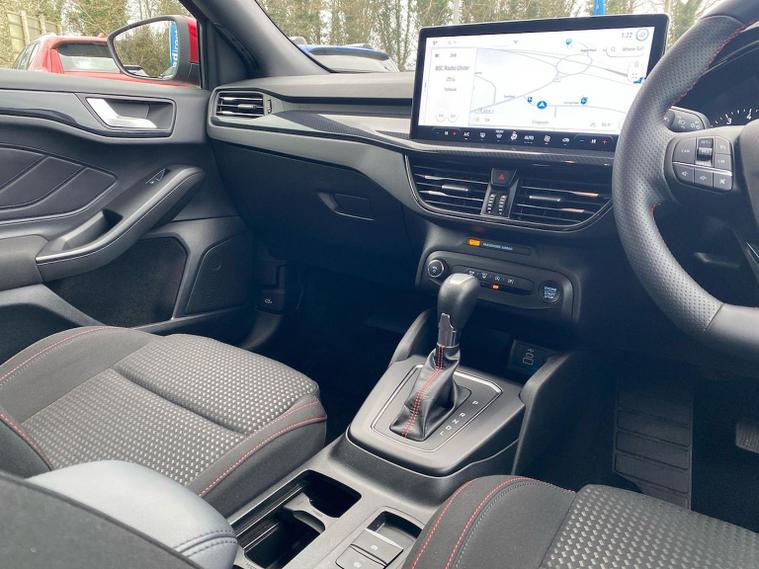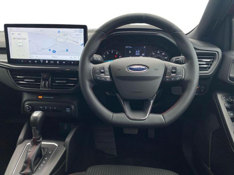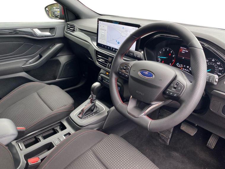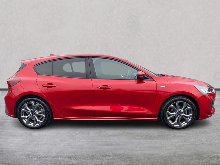 We are delighted to present this striking Ford Focus 1.0 EcoBoost Hybrid mHEV ST-Line 5dr, having covered just 12, 415 miles from new. A superb example of one of the UK’s most popular hatchbacks, this ST-Line model combines sporty styling, modern technology and impressive efficiency. Powered by Ford’s award-winning 1.0 EcoBoost Hybrid (mHEV) engine, this Focus delivers responsive performance while maintaining excellent fuel economy. The mild-hybrid system enhances efficiency and smoothness, making it ideal for both city driving and longer motorway journeys. The ST-Line trim adds a dynamic edge with sports styling, unique body detailing, and eye-catching alloy wheels. Inside, you’ll find a driver-focused cabin with supportive sports seats, a flat-bottom steering wheel, and quality finishes throughout. The infotainment system features a large touchscreen display with satellite navigation, Apple CarPlay and Android Auto, ensuring seamless connectivity on the move. Further equipment typically includes rear parking sensors, cruise control with speed limiter, lane keeping aid, digital instrument display, air conditioning, and advanced safety systems designed to provide confidence behind the wheel. This vehicle is in excellent condition, reflecting its low mileage and careful ownership. The Focus remains a benchmark in its class for handling and comfort, offering sharp steering and a refined driving experience without compromising practicality. With five doors and a generous boot space, it’s perfectly suited to families, commuters, or anyone seeking a stylish yet sensible hatchback.
