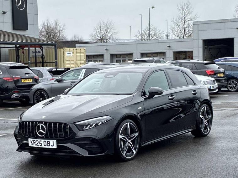 **ENQUIRE NOW ONLINE OR CALL 01743522189** QUOTE *KR25OBJ* TO GET A PERSONALISED GUIDED VIDEO TOUR OF THIS CAR Lookers Mercedes-Benz of Shrewsbury are pleased to be offering this fantastic A35 AMG Premium Hatchback Automatic finished in Obsidian Black Metallic over a contrasting Black Artico Leather Interior. Having just covered 6322 miles, this lovely example benefits from a Full Mercedes-Benz Service History ready for its new owner to enjoy! Many features are included on the Premium specification such as 19" AMG 5 Twin Spoke Alloy Wheels, MBUX Augmented Reality Navigation, Apple CarPlay & Android Auto, Heated Front Seats, Ambient Lighting, Rear View Camera, DAB Digital Radio, Privacy Glass, Cruise Control, Electrically Adjustable Front Seats with Memory & plenty more! Your chance to own this beautiful Mercedes-Benz. From our Modern Showroom located on Battlefield Industrial Estate with easy links to the M54 & M6 Motorway, Lookers Mercedes-Benz of Shrewsbury is proud to deliver New and Used vehicles for our customers, through superb levels of customer service and support, we work hard to meet your high expectations. Our comprehensive range of vehicles will satisfy all who demand the best – whether for private or business use. Our experienced showroom staff offer excellent customer service with easy Click & Drive, the simple, contactless way to buy a car. Don't miss out! Call today to reserve this beautiful Mercedes-Benz from Lookers Mercedes-Benz of Shrewsbury. *DISCLAIMER* - Vehicle Specification & Features are provided by Third-Party sources. Whilst we make checks for accuracy, we unfortunately can not be held responsible for any inaccuracies.
