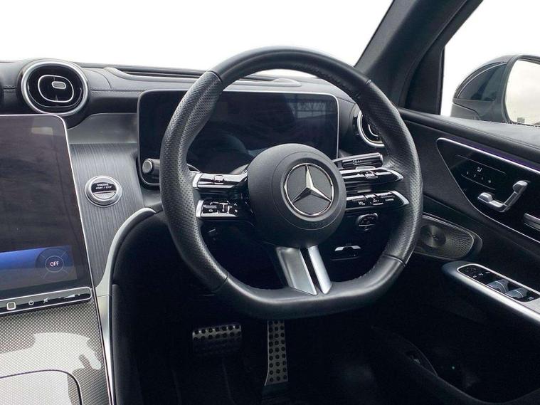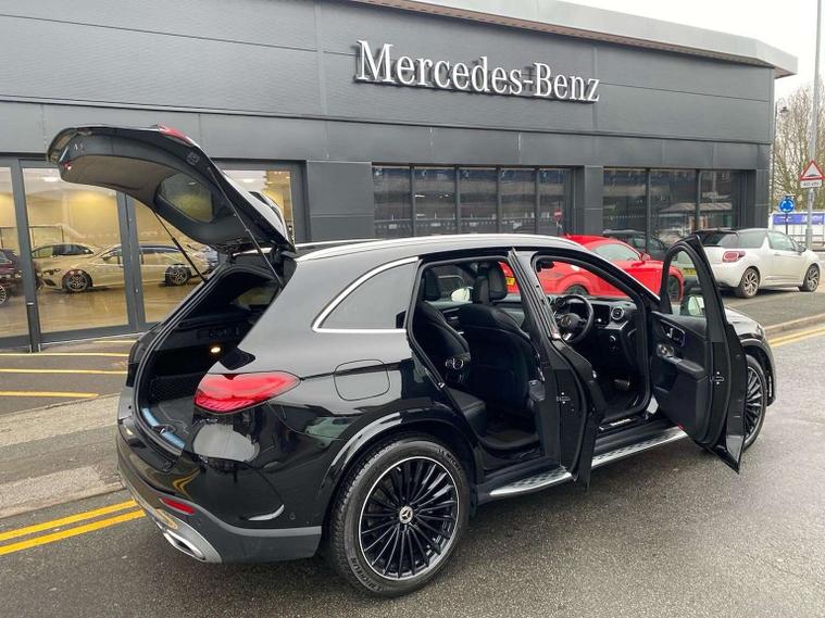 Finished in Obsidian black metallic, Mercedes-Benz of Stafford are pleased to offer this lovely GLC 300 4Matic AMG Line Premium Plus featuring Apple/Android car play, Electric Tailgate, 20-inch AMG multi-spoke light-alloy wheels, Side Steps, 360° camera, Head-up display, Widescreen Cockpit, Panoramic sliding sunroof, Blind Spot Assist, Dash cam, Memory Pack and Heated Front Seats this is not one to be missed! This 2023 Mercedes-Benz GLC300h AMG Line (Premium Plus) is a Mercedes-Benz manufacturer approved vehicle, boasting a full service history with its last service completed at 20, 132 miles on 12th November 2025, and benefits from an MOT valid until November 2026. This four wheel drive, Euro 6 compliant model features a 2.0L petrol hybrid engine, offering impressive performance with 0-62mph achieved in just 6.2 seconds. The AMG Line trim enhances its sporty appeal, while the Premium Plus package includes an electric panoramic glass sunroof, a 360-degree camera system within the parking package for effortless manoeuvring, and KEYLESS-GO for convenient entry and starting. Further enhancing your driving experience, this GLC is equipped with Active Parking Assist with PARKTRONIC, making parking simpler and safer. For audiophiles, the Burmester 3D surround sound system delivers exceptional audio quality. The generous boot space provides ample room for luggage or shopping, and with a towing weight of 2400 kg, it is well suited for various needs. This vehicle also comes with a 12-month warranty, offering peace of mind for its next owner. The Dealership is situated near the centre of Stafford, directly opposite Stafford train station. If you would like to make an appointment to view or test drive this vehicle, please call to speak to one of our sales team here at Mercedes Stafford on 01785422582. A video tour is also available on request. Please call and quote YH73ABT to ensure you do not miss out on this wonderful vehicle.