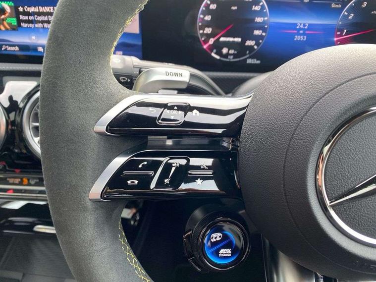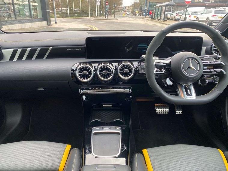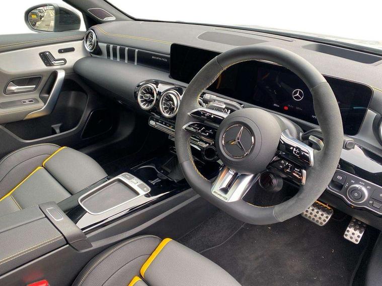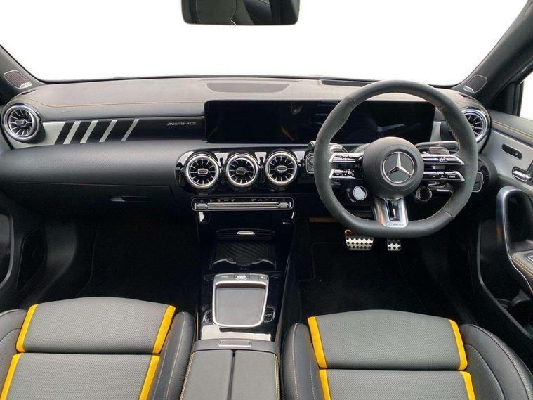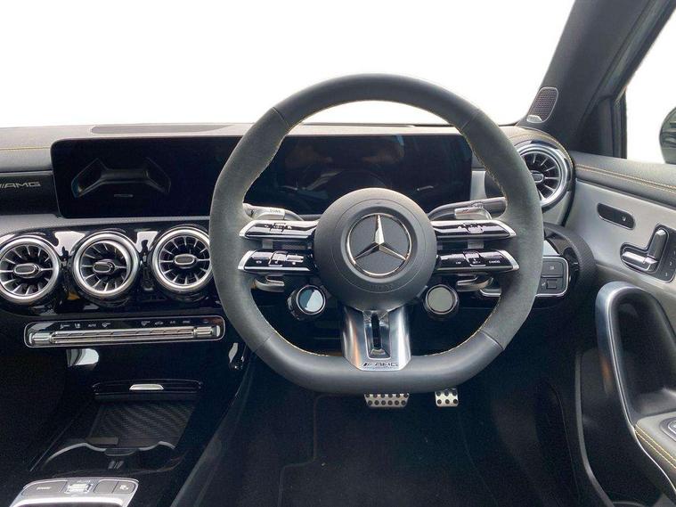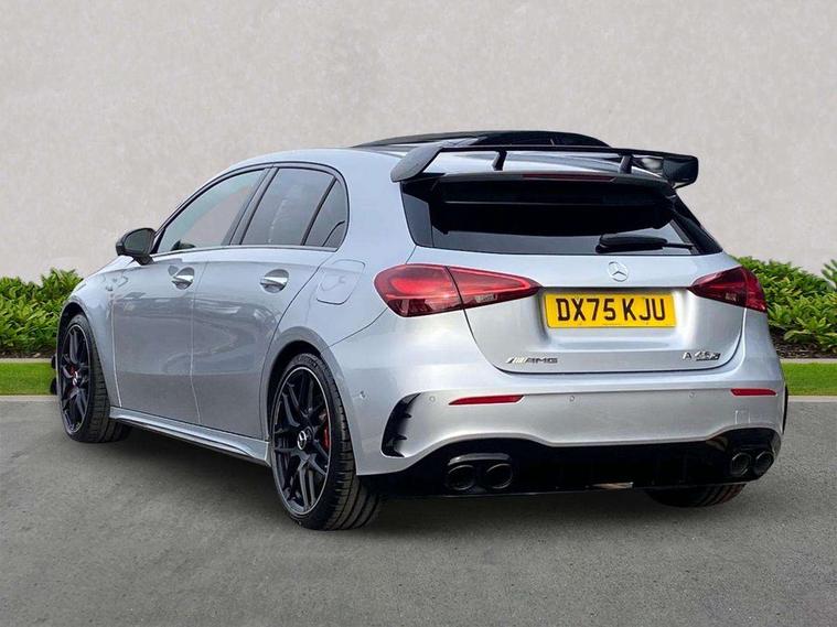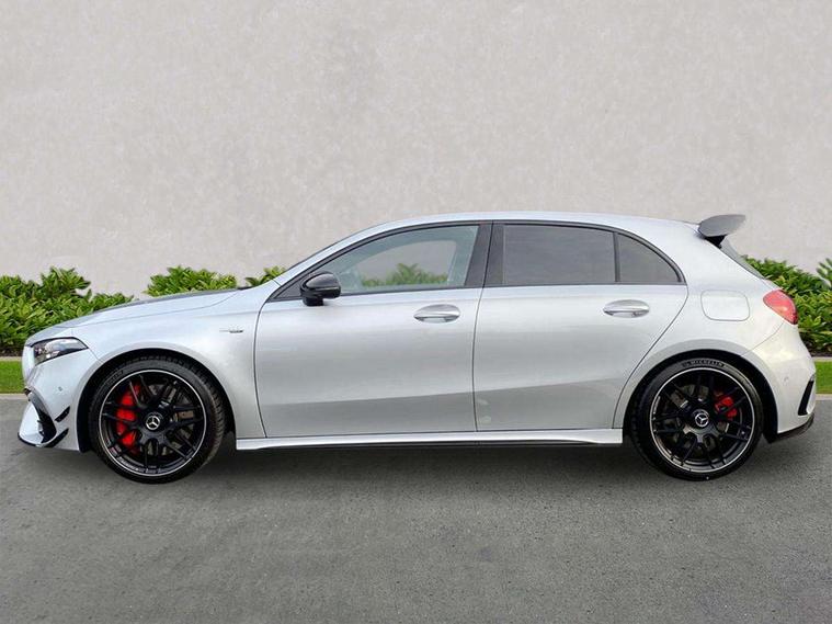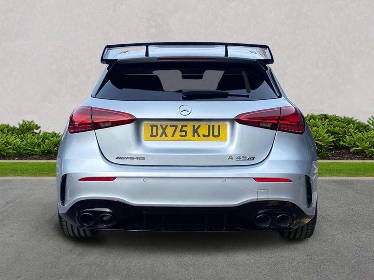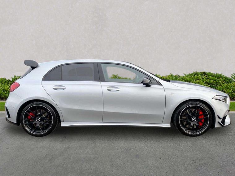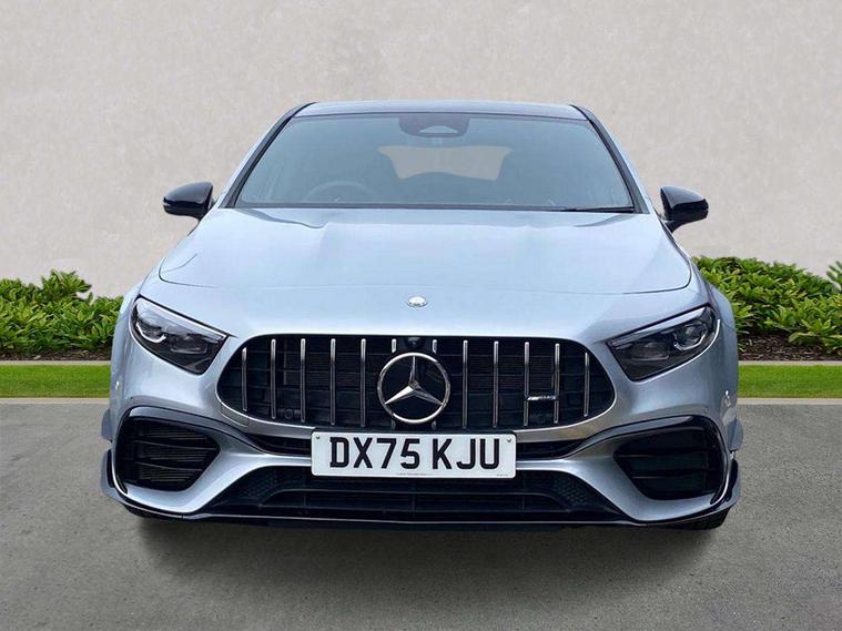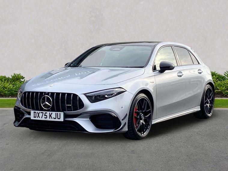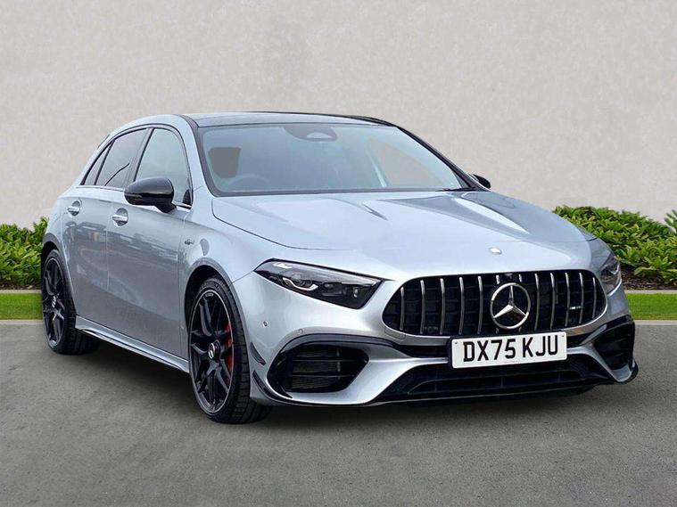 Finished in high-tech silver Metallic paint with black leather seats, Mercedes-Benz of Stafford are pleased to offer this lovely A45 AMG S Plus Hatchback featuring Apple/Android car play, 19-inch AMG cross-spoke forged wheels, AMG Night package, Parking Package with 360° camera, Wireless charging, Heated front seats, Burmester surround sound system, Multibeam LED with Adaptive Highbeam Assist PlusHead-up display, Panoramic sliding sunroof, Blind Spot Assist and AMG Performance seats this is not one to be missed! This exceptional Mercedes-Benz A Class A45 AMG S Plus, registered in 2025, boasts an incredibly low mileage of just 2053 miles, making it a truly unique find. As a Mercedes-Benz manufacturer approved vehicle with a full service history and only one owner from new, this four wheel drive, 2.0 litre petrol model represents outstanding provenance. It features the sophisticated AMG S Plus trim and meets Euro 6 emission standards. Inside, you'll discover the comfort of THERMOTRONIC luxury automatic climate control with two zones and a display, alongside a helpful Head-Up Display. Navigating and parking are made effortless with the Parking Package, offering a 360 degree camera system, and you can stay connected with integrated smartphone functionality including Android Auto and Apple CarPlay. The performance of this A45 AMG S Plus is truly remarkable, highlighted by its rapid 0-62mph acceleration in just 3.9 seconds, a figure that sets it apart from many other vehicles in its class. The Dealership is situated near the centre of Stafford, directly opposite Stafford train station. If you would like to make an appointment to view or test drive this vehicle, please call to speak to one of our sales team here at Mercedes Stafford on 01785422582. A video tour is also available on request. Please call and quote DX75 KJU to ensure you do not miss out on this wonderful vehicle