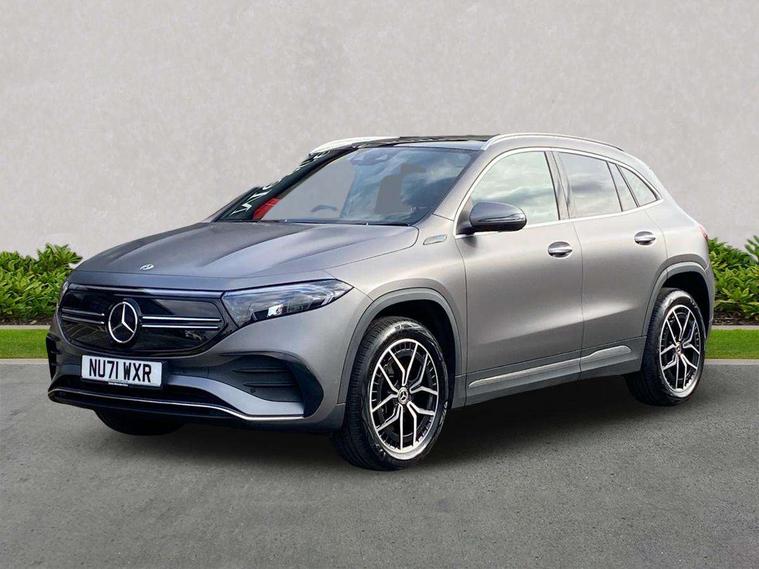 Finished in Designo Mountain Grey MAGNO with black leather seats, Mercedes-Benz of Stafford are pleased to offer this lovely EQA 300 66.5kWh AMG Line (Premium) featuring Apple/Android car play, Driving Assistance Package, Parking package with reversing camera, KEYLESS-GO package, Wireless charging and connection via Bluetooth, Panoramic sliding sunroof, Parking Assist PARKTRONIC 19 inch alloy wheels and Heated front seats this is not one to be missed! This 2021 Mercedes-Benz EQA 300 AMG Line (Premium) is a Mercedes-Benz manufacturer approved vehicle, boasting a full service history and having had only one owner from new. This electric four wheel drive model features a 73 kWh battery offering a maximum range of 260 miles when new. It comes with a 12 month warranty and a 12 month MOT provided on purchase, with its last service completed on 2025-11-04 at 30996 miles. Notable features include THERMOTRONIC automatic climate control, LED High Performance Headlights, a Mercedes-Benz Advanced Sound System, wireless charging for mobile devices, and the Keyless Go Comfort Package for effortless entry. The EQA 300 AMG Line (Premium) offers a full charging time at home of 10 hours 16 minutes using a 7kW charger, and can achieve an 80% charge from empty in just 34 minutes at a public charging station. These charging capabilities, combined with its electric four wheel drive system and the comprehensive suite of premium features, position this Mercedes-Benz EQA as a superior choice for those seeking an advanced and convenient electric driving experience. The Dealership is situated near the centre of Stafford, directly opposite Stafford train station. If you would like to make an appointment to view or test drive this vehicle, please call to speak to one of our sales team here at Mercedes Stafford on 01785422582. A video tour is also available on request. Please call and quote NU71 WXR to ensure you do not miss out on this wonderful vehicle. "