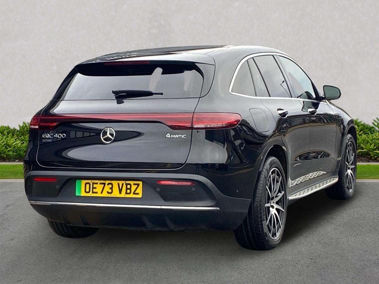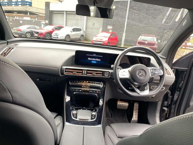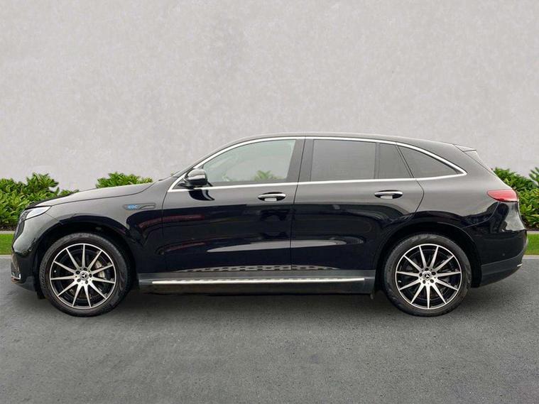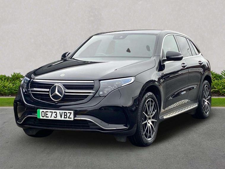 Finished in Obsidian black metallic with black leather seats, Mercedes-Benz of Stafford are pleased to offer this lovely EQC 400 80kWh AMG Line Edition SUV featuring Apple/Android car play, ambient lighting, Blind Spot Assist, Parking Assist with PARKTRONIC, Side Steps, 20 inch alloy wheels and heated seats this is not one to be missed! This 2023 Mercedes Benz EQC 400 AMG Line Edition presents an exceptional ownership proposition, boasting a full Mercedes Benz manufacturer approved status and a comprehensive service history, with its last service completed on 2024-11-13 at 7606 miles. This electric, four wheel drive SUV has covered a very low mileage of just 13376 miles for its age and has had only one owner since new. It comes with a 12 month warranty for your peace of mind, and its MOT is valid until November 2026. The EQC 400 AMG Line Edition offers impressive performance, accelerating from 0-62mph in a swift 5.1 seconds, a figure that sets it apart from many comparable vehicles. Its 88 kWh battery provides a maximum range of 254 miles when new, and can be fully charged at home using a 7kW charger in approximately 12 hours and 13 minutes. For quicker top ups, a rapid public charge can take the battery from empty to 80% in just 45 minutes. The Dealership is situated near the centre of Stafford, directly opposite Stafford train station. If you would like to make an appointment to view or test drive this vehicle, please call to speak to one of our sales team here at Mercedes Stafford on 01785422582. A video tour is also available on request. Please call and quote OE73 VBZ to ensure you do not miss out on this wonderful vehicle.