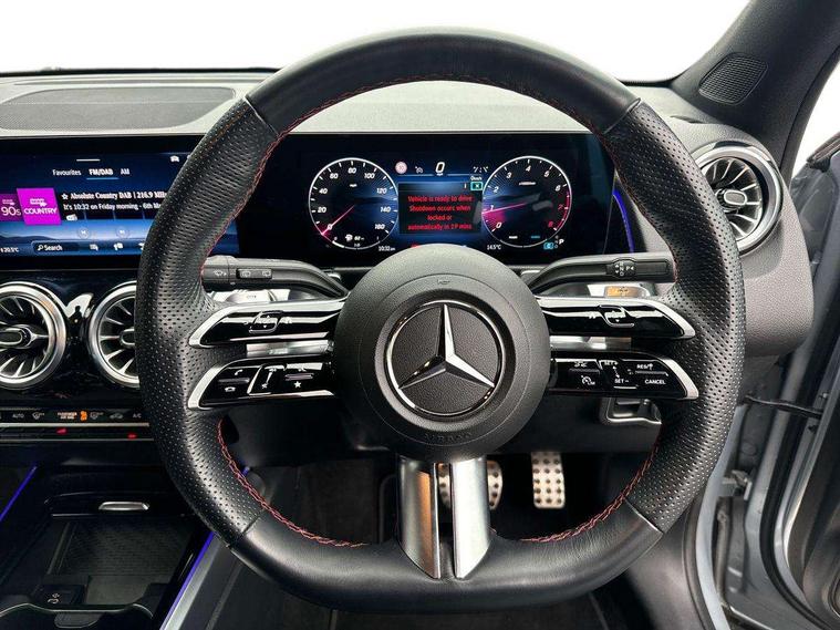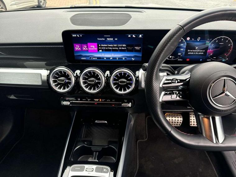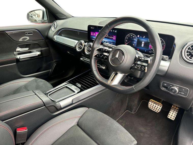 Finished in high-tech silver with black leather seats, Mercedes-Benz of Stafford are pleased to offer this lovely GLB200 MHEV AMG Line (Executive) SUV featuring Apple/Android car play, EASY-PACK tailgate, Reversing camera, Adaptive Highbeam Assist, Active Parking Assist with PARKTRONIC, sat nav, 19 inch alloy wheels and heated seats this is not one to be missed! This Mercedes-Benz GLB200 AMG Line (Executive) from 2025 boasts a full service history and remains manufacturer approved, offering peace of mind with 23 months of warranty remaining. This 1.3 litre petrol hybrid model, registered in 2025, has had only one owner and its last service was completed on 2025-03-07 at 24, 051 miles, ensuring it meets the Euro 6 emission class. The GLB200 AMG Line is a versatile choice, featuring seven seats and a large boot space, making it ideal for families or those needing extra capacity. Notable features include the Keyless Go Comfort Package with hands-free access and illuminated door handles, a wireless charging pad for your phone, and LED High Performance Headlamps with adaptive highbeam assist for excellent visibility. For added comfort, the front seats are heated, and you can easily connect your devices with Bluetooth. These features collectively enhance the driving experience, setting this GLB apart from others. The Dealership is situated near the centre of Stafford, directly opposite Stafford train station. If you would like to make an appointment to view or test drive this vehicle, please call to speak to one of our sales team here at Mercedes Stafford on 01785422582. A video tour is also available on request. Please call and quote KX25YZV to ensure you do not miss out on this wonderful vehicle.
