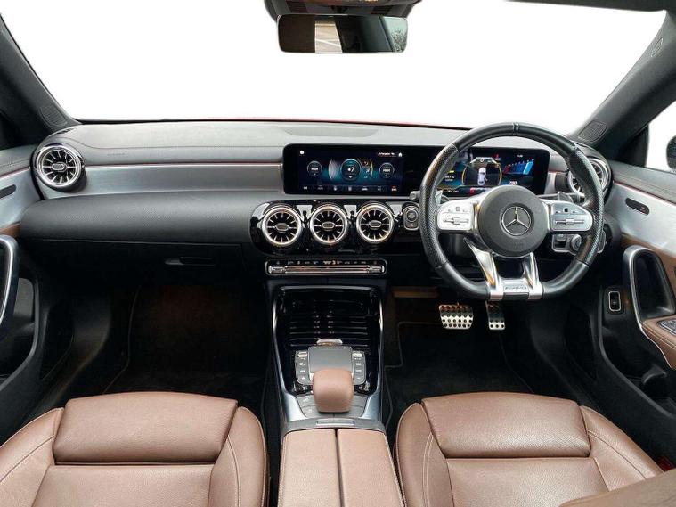 Experience exhilarating performance, striking design and everyday luxury with this Mercedes-Benz CLA 35 AMG Premium 4Matic 4-Door Tiptronic Automatic, presented in the stunning Designo Patagonia Red metallic and complemented by a beautifully crafted Bahia Brown leather interior. With 32, 877 miles, a full Mercedes-Benz service history and the added reassurance of a 2-year AMG warranty, this exceptional example offers an outstanding opportunity to own a high-performance AMG with complete confidence. The CLA 35 AMG Premium specification enhances the sleek, coupé-inspired silhouette with distinctive AMG styling, sporty alloy wheels and refined exterior details that give this CLA a confident and dynamic road presence. Inside, the cabin blends performance with luxury effortlessly, with premium materials, AMG detailing and the rare Designo colour combination creating a truly special driving environment. The advanced digital cockpit and intuitive infotainment system provide easy access to navigation, media and vehicle settings, while features such as heated seats, ambient lighting, cruise control and dual-zone climate control ensure every journey is both engaging and comfortable. Powered by the responsive 2.0-litre AMG petrol engine and paired with a smooth Tiptronic automatic transmission, the CLA 35 delivers impressive performance and sharp handling, supported by the confidence-inspiring 4Matic all-wheel-drive system. A comprehensive range of Mercedes-Benz safety and driver assistance systems provides added reassurance behind the wheel. This CLA 35 AMG Premium represents a fantastic opportunity to own a beautifully specified and meticulously maintained performance saloon finished in one of the most desirable colour combinations available. Contact Mercedes-Benz of Stoke today on 01782492848 to request a personalised video or reserve this vehicle.