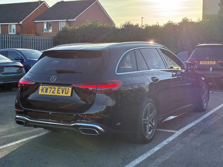 This stunning Mercedes-Benz C 300 d AMG Line Estate, presented in the sophisticated Obsidian Black metallic paint, perfectly blends powerful diesel performance with premium comfort, cutting-edge technology and impressive practicality. As a Mercedes-Benz Approved Used vehicle, it offers exceptional quality assurance, full multi-point inspection and the peace of mind that comes from official manufacturer approval. Powered by a responsive and efficient 3.0-litre diesel engine, the C 300 d delivers strong acceleration and smooth, refined performance, making it ideal for both long motorway journeys and everyday use. The AMG Line styling gives the car a sporty, confident presence, with its aggressive diamond grille, sculpted lines and distinctive AMG alloy wheels enhancing the estate’s elegant, dynamic profile. Inside, the cabin showcases Mercedes-Benz luxury at its finest. Premium materials, sports seats and ambient lighting create a modern and refined environment, while the advanced MBUX infotainment system provides seamless navigation, intuitive voice control and superb connectivity. The C-Class Estate also excels in practicality, offering generous boot space, a versatile load area and excellent rear passenger comfort, making it an outstanding choice for family life, business use or long-distance travel. This C 300 d AMG Line Estate has been meticulously prepared to Mercedes-Benz Approved Used standards, ensuring complete confidence in its condition, history and performance. Beautifully presented in Obsidian Black metallic, it represents an exceptional opportunity to own a premium, stylish and powerful estate car. To secure this vehicle or request a personalised video, call Mercedes-Benz of Stoke on 01782?202112.