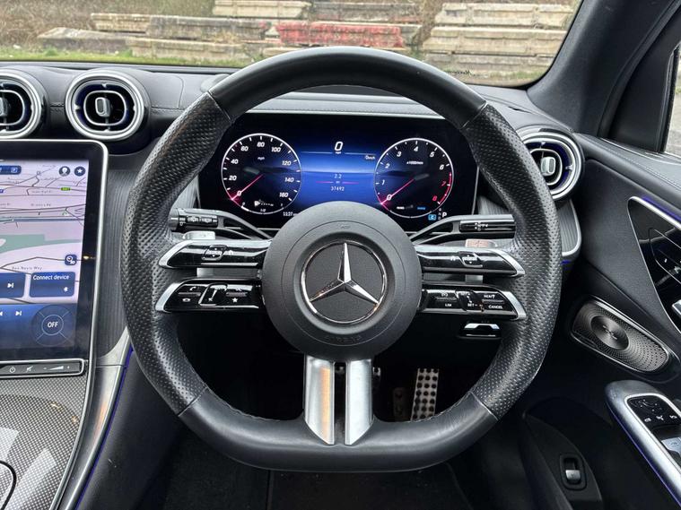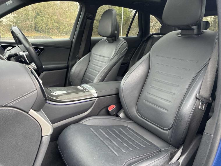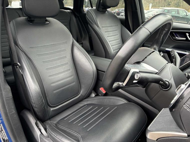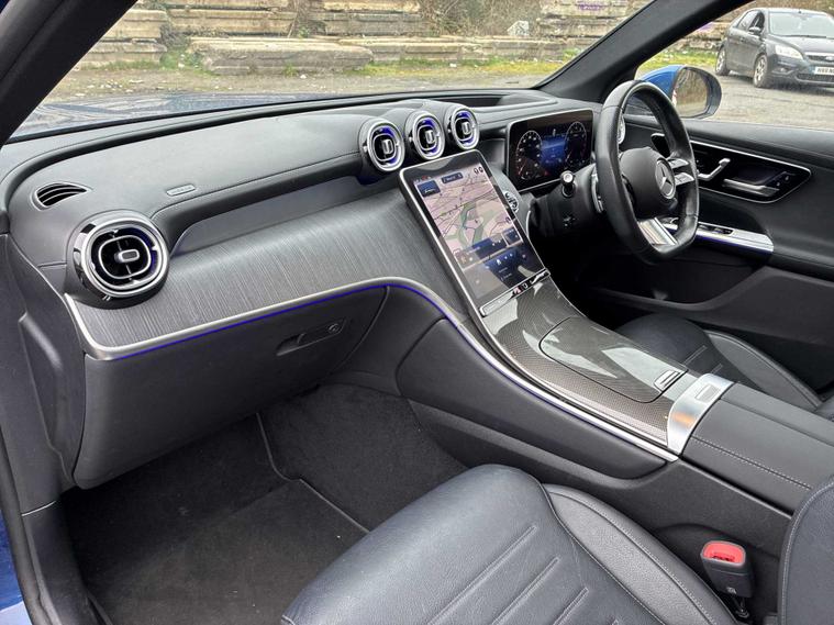 This 2023 Mercedes Benz GLC300h AMG Line Premium Plus is a superb example, having had only one owner since new. This four wheel drive, Euro 6 compliant SUV boasts a powerful 2.0 litre petrol hybrid engine, offering impressive performance with a 0-62mph acceleration time of just 6.2 seconds. The AMG Line trim enhances its sporty appeal, while the Premium Plus package includes desirable features such as THERMOTRONIC 4-zone automatic climate control for personalised comfort, and a Parking Package with a 360-degree camera for effortless manoeuvring. You'll also benefit from Blind Spot Assist for added safety and convenient wireless charging for your devices, alongside heated front seats for those colder journeys. The spacious boot offers ample room for all your luggage, making this GLC a practical choice for families and adventurers alike. Its towing weight of 2400 kg means it's well equipped for towing caravans or trailers. These features, combined with its advanced hybrid technology and the renowned Mercedes Benz build quality, position this GLC300h as a superior option compared to many other vehicles in its class, providing a refined and efficient driving experience.