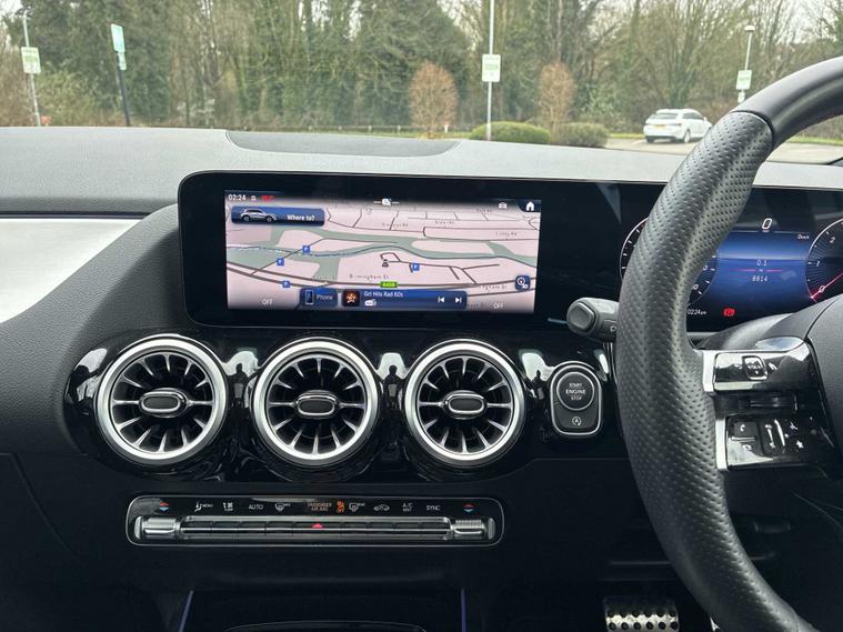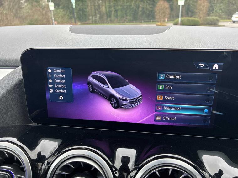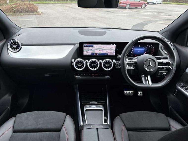 This 2025 Mercedes Benz GLA220d AMG Line (Premium Plus) is a superb example, having had only one owner from new. This four wheel drive diesel SUV boasts a 2.0 litre engine and meets Euro 6 emission standards. It comes equipped with the desirable AMG Line trim, a panoramic glass sunroof that opens for an airy cabin experience, and convenient wireless phone charging. Access is made easy with body coloured door handles featuring a chrome insert for keyless entry, further enhanced by the KEYLESS GO comfort package. Experience impressive performance with a 0-62mph acceleration time of just 7.5 seconds, all while achieving an excellent fuel economy of 47 mpg. This GLA also offers generous boot space, making it practical for everyday use and longer journeys. Its low CO2 emissions are a testament to its efficient design. The advanced parking package includes a 360 degree camera, providing comprehensive assistance when manoeuvring and parking, demonstrating how this vehicle excels beyond its peers.