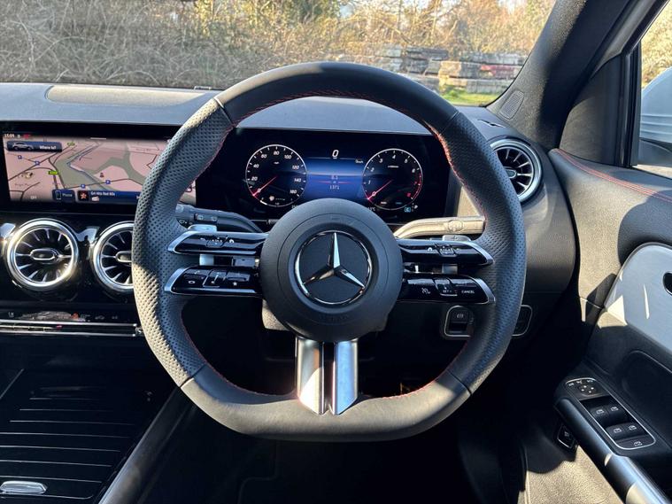 This 2025 Mercedes-Benz GLA200h AMG Line (Executive) presents an exceptional ownership proposition with an incredibly low mileage of just 1140 miles, having had only one owner from new. This Euro 6 compliant model features a 1.3L petrol hybrid engine, offering an efficient and responsive driving experience. The AMG Line trim enhances its sporty appeal, while the inclusion of LED High Performance Headlamps with Integrated LED Daytime Running Lights and Adaptive High Beam Assist ensures excellent visibility. Inside, you'll find the Mercedes-Benz Sound System delivering 100W of audio clarity, seamless Bluetooth connectivity for your devices, and the convenience of KEYLESS-GO Comfort Package for effortless entry and starting. Comfort is further assured with THERMOTRONIC automatic climate control, providing a pleasant cabin environment regardless of the outside temperature. The Mercedes-Benz GLA200h AMG Line excels in practicality and performance. Its impressive acceleration from 0-62mph in just 8.9 seconds demonstrates its dynamic capability, while the generous boot space highlights its suitability for everyday life and longer journeys. These attributes, combined with its near new condition and comprehensive feature set, position this GLA as a superior choice compared to other vehicles in its class.