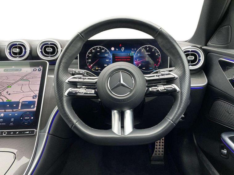 This 2024 Mercedes Benz C Class C200h AMG Line is a superb example, having had only one owner since new. It features a 1.5 litre petrol hybrid engine, meeting Euro 6 emission standards, and is presented in the desirable AMG Line trim. Inside, you'll find the comfort of THERMATIC two zone automatic climate control and heated front seats, while the Memory Package ensures your preferred seating position is always ready. Experience the responsive performance of this C Class, accelerating from 0 to 62 miles per hour in just 7.5 seconds, a testament to its efficient hybrid technology. This vehicle is further enhanced by the Active Parking Assist with front and rear sensors, complemented by a reversing camera within the Parking Package, making manoeuvring effortless. These features collectively demonstrate a superior level of comfort, convenience, and driving dynamics compared to other vehicles in its class. IF YOU WOULD LIKE TO MAKE AN APPOINTMENT TO VIEW OR TEST DRIVE THIS VEHICLE, PLEASE CALL TO SPEAK TO ONE OF OUR SALES TEAM HERE AT MERCEDES WOLVERHAMPTON ON 01902216918. A VIDEO TOUR IS ALSO AVAILABLE ON REQUEST. PLEASE CALL AND QUOTE KU24 EZR TO ENSURE YOU DO NOT MISS OUT ON THIS WONDERFUL VEHICLE.