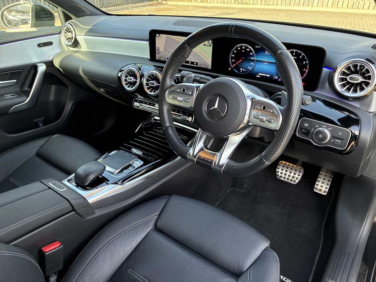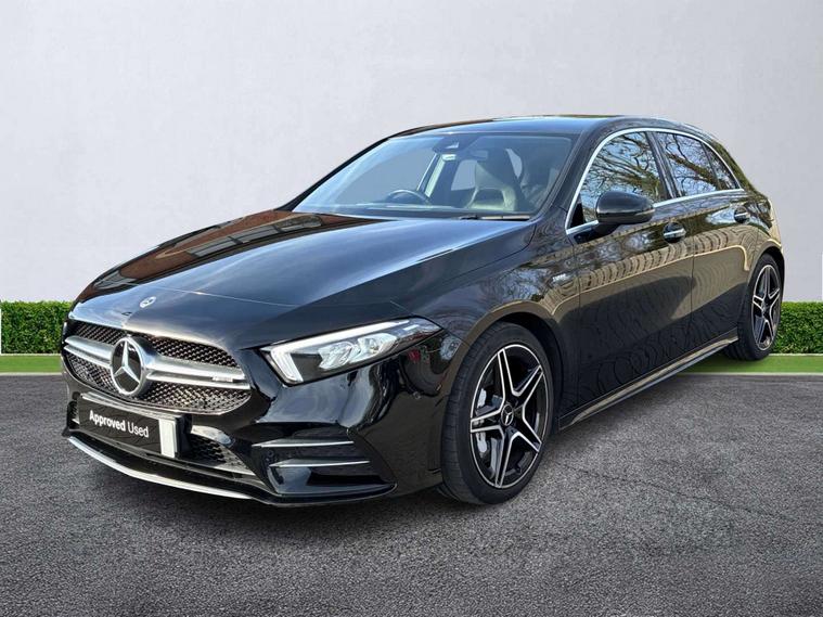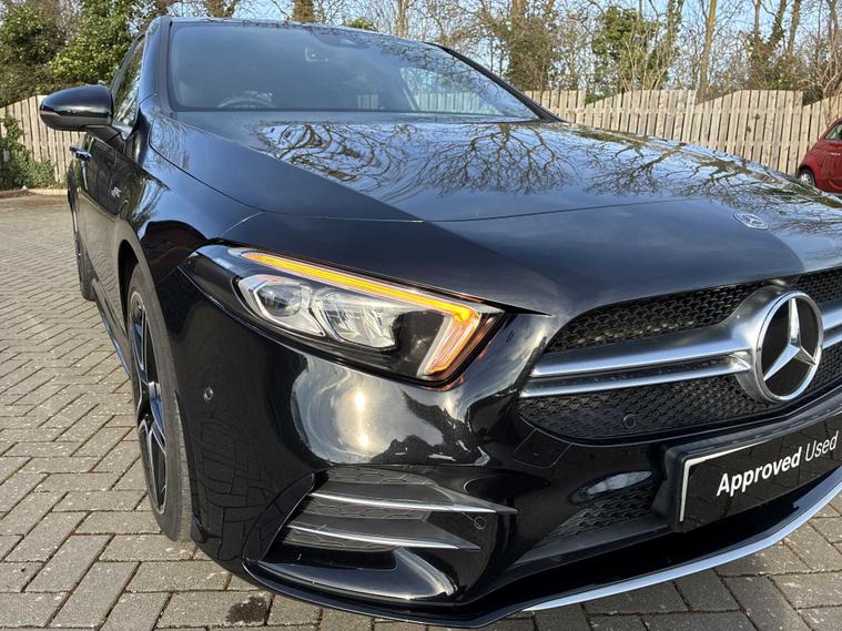 Mercedes-Benz of Worcester are delighted to offer this AMG A35 4Matic Premium, finished in Cosmos Black Metallic with a Black leather interior. This is a stunning example and must be seen to fully appreciate. With being regularly main dealer serviced as well as being inspected here at Mercedes-Benz of Worcester by our fully trained and professional Mercedes-Benz technicians; we are confident you will be impressed with the quality of drive and performance. It offers specification including, Premium Navigation, Reversing camera AMG Night package, 10-inch digital instrument display, Active Parking Assist with PARKTRONIC, 64-colour ambient lighting, Mercedes-Benz emergency call system, Electrically folding exterior mirrors, THERMOTRONIC automatic climate control, Multibeam LED Headlights, 18-inch AMG 5-twin-spoke light-alloy wheels, Premium package and much more. We also offer a wide range of purchasing options to suit your needs and hassle-free part-exchange, so you can be confident that you will receive the very best service & advice. All our Approved Mercedes Benz cars have a minimum of 12 months Mercedes Benz Warranty, Free Key Cover, Mot Cover and 1-year Roadside Assistance which continues when you service at any Mercedes Benz Main Retailer. We also perform background checks for accident damage and any mileage discrepancies to ensure we supply you with the highest possible standard of car. We pride ourselves on not only offering vehicles that meet our high standards but also that offer unrivalled value for money. Mercedes Benz of Worcester is here to assist you with all your motoring needs and strive for 100% customer satisfaction. We would love to arrange a personalised video to be sent to you. Please contact the team on 01905698128 as we look forward to taking your enquiry further