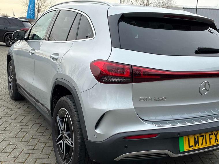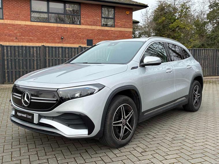 Mercedes-Benz Worcester are delighted to offer this EQA 250 AMG Line SUV finished in Iridium Silver Metallic with Black upholstery. A stunning example and must be seen to fully appreciate. With 1 owner from new also being inspected here at Mercedes-Benz of Worcester by our fully trained and professional Mercedes-Benz technicians. We are confident you will be impressed with the quality of drive and performance. It offers specification including Premium Navigation, Smartphone integration, Apple Car Play, Android Auto, Blind Spot Assist, Reversing camera, Parking Assist PARKTRONIC, Active Lane Keeping Assist, Collision Prevention Assist, Exit warning function, Mercedes-Benz emergency call system, All-digital instrument display, Electrically folding exterior mirrors, Speed Limit Assist, Digital radio, MBUX multimedia system, Automatic climate control, AMG bodystyling, Heat-insulating dark-tinted glass, Heated front seats, Light longitudinal-grain aluminium trim, Rear armrest, Cruise Control, Comfort suspension, LED Headlamps, Roof rails, Ambient lighting and 18-inch AMG 5-twin-spoke light-alloy wheels. We also offer a wide range of purchasing options to suit your needs and hassle-free part-exchange, so you can be confident that you will receive the very best service & advice. All our Approved Mercedes Benz cars have a minimum of 12 months Mercedes Benz Warranty, Free Key Cover, Mot Cover and 1-year Roadside Assistance which continues when you service at any Mercedes Benz Main Retailer. We also perform background checks for accident damage and any mileage discrepancies to ensure we supply you with the highest possible standard of car. We pride ourselves on not only offering vehicles that meet our high standards but also that offer unrivalled value for money. Mercedes Benz of Worcester are here to assist you with all your motoring needs and strive for 100% customer satisfaction. We would love to arrange a personalised video to be sent to you.