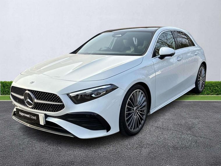 Mercedes-Benz of Worcester are delighted to offer this A200 AMG line Premium Plus finished in Digital White Metallic with a Black interior. This is a stunning example and must be seen to fully appreciate. Being inspected here at Mercedes-Benz of Worcester by our fully trained and professional Mercedes-Benz technicians; we are confident you will be impressed with the quality of drive and performance. It offers a high specification including Premium Navigation, Panoramic sliding sunroof, 360° camera, Active Lane Keeping Assist, 10-inch digital instrument display, Head-up display, Multibeam LED Headlights, Adaptive Highbeam Assist Plus, 64-colour ambient lighting, Traffic Sign Assist, Seat comfort package, Heated front seats, 19-inch AMG multi-spoke light-alloy wheels Through-loading feature, and much more. With premium materials, advanced tech features and impeccable craftsmanship, you'll feel like you're in the lap of luxury. The touchscreen media display, including the immersive MB infotainment system, ensures that you stay connected and entertained on every journey. This vehicle is ready and waiting for you to test drive at our store here in Worcester. Contact us today to find out more about this exceptional vehicle. Benefit from our competitive finance packages and enjoy complete peace of mind when buying from an approved used retailer. We also offer a wide range of purchasing options to suit your needs and hassle-free part-exchange, so you can be confident that you will receive the very best service & advice. All our Approved Mercedes Benz cars have a minimum of 12 months Mercedes Benz Warranty, Free Key Cover, Mot Cover and 1-year Roadside Assistance which continues when you service at any Mercedes Benz Main Retailer. We also perform background checks for accident damage and any mileage discrepancies to ensure we supply you with the highest possible standard of car.