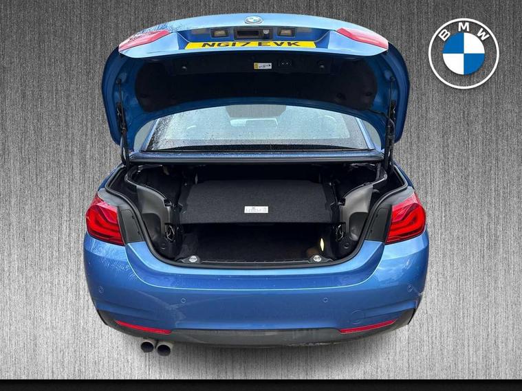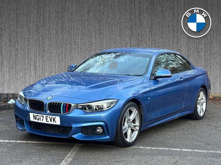 Welcome to BMW Crewe. Estoril blue BMW 430i M sport convertible with a black Dakota leather interior. Additional options on this car include reversing camera, folding wing mirrors with auto dimming and a convertible comfort package. If you are viewing from a distance let us bring the car to you via video link where one of our BMW experts will demonstrate the car to you on your smart device, allowing you to view the vehicle in the comfort of your own home. Thank you for viewing our advert, we look forward to assisting you further.