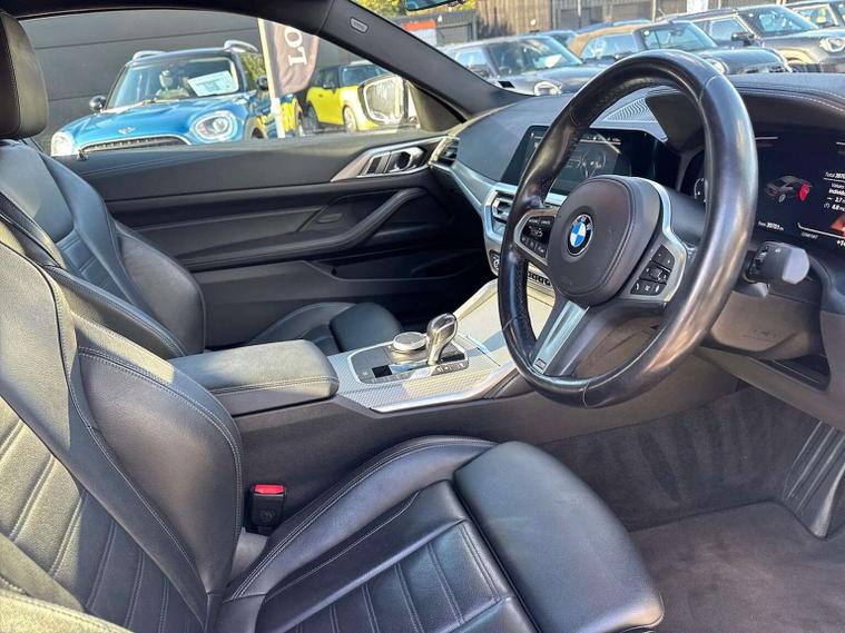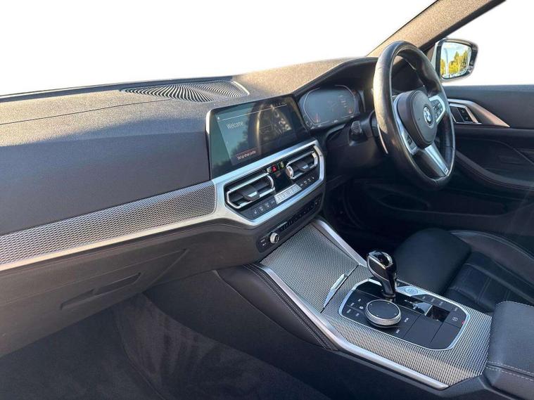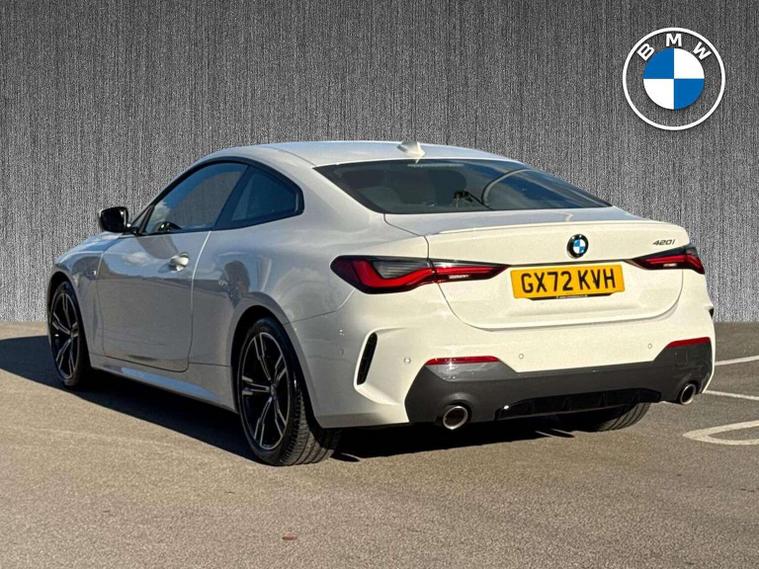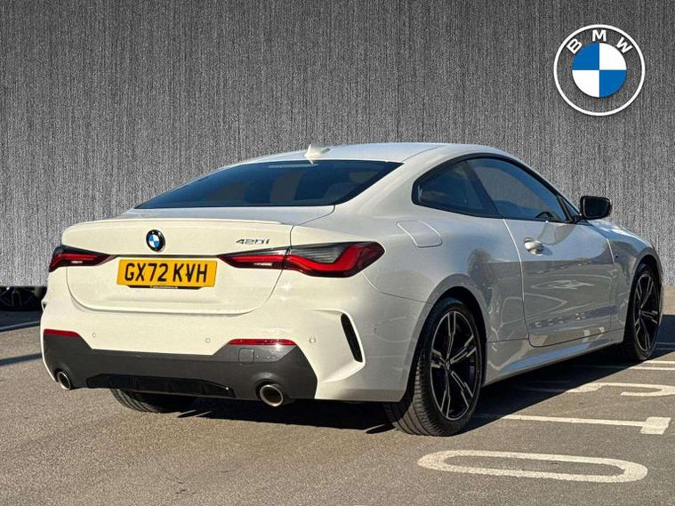 "Welcome to BMW Crewe. Alpine white BMW 420i M sport with a black vernasca interior. If you are viewing from a distance let us, bring the car to you via video link where one of our BMW experts will demonstrate the car to you on your smart device, allowing you to view the vehicle in the comfort of your own home. Thank you for viewing our advert, we look forward to assisting you further."