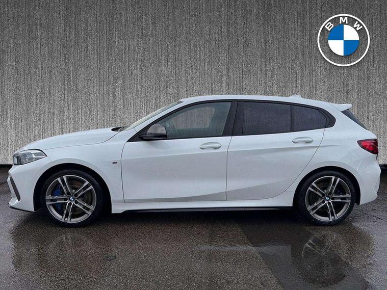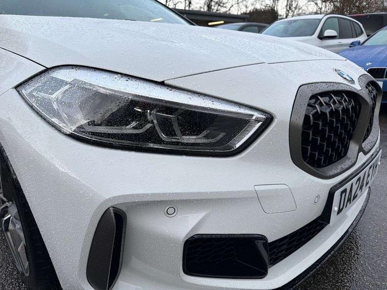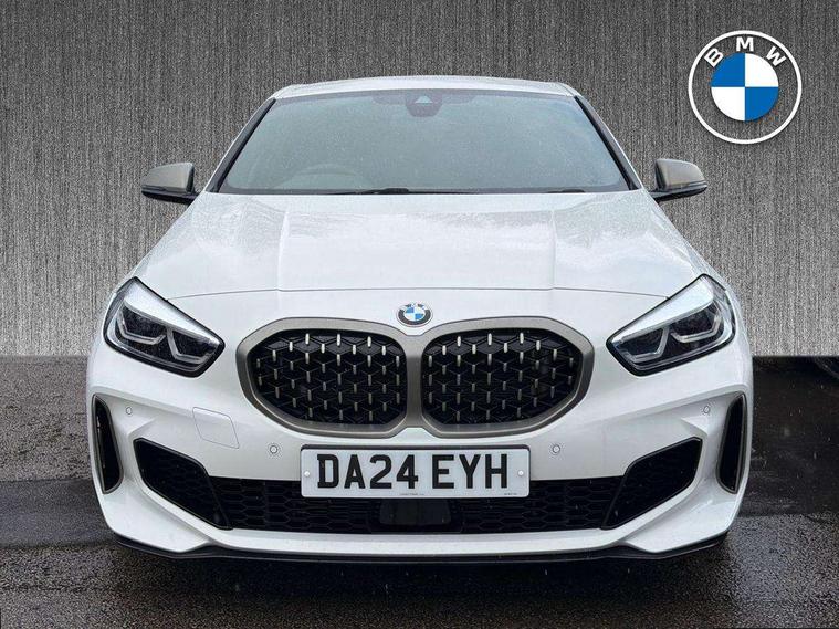 Welcome to BMW Crewe. Alpine white BMW M135i xDrive with a cloth trigon/alcantara interior. Optional extras on this car include sun protection glass. If you are viewing from a distance let us bring the car to you via video link where one of our BMW experts will demonstrate the car to you on your smart device, allowing you to view the vehicle in the comfort of your own home. Thank you for viewing our advert, we look forward to assisting you further.