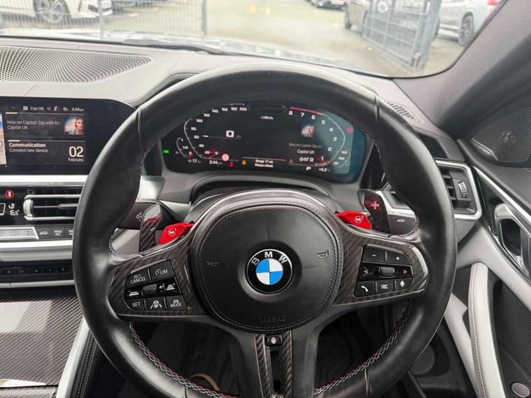 Thank you for viewing this great spec M4 Competition M xDrive available from our BMW site in Stoke-On-Trent. Finished in stunning BMW Individual paint and Silverstone and Black Bicolour Full Merino Interior with all the great specification you expect from a BMW that includes; 19/20” Alloys, M Brakes with Red Calipers, Harman/Kardon Surround Sound, Ultimate Pack. Why Choose Lookers BMW Stoke? As with all BMW approved Vehicles there are a host of additional reasons of why to choose Lookers BMW to supply you with your next vehicle which include : • Minimum 12 Month unlimited Mileage BMW warranty • Independent, Certified check to verify vehicle history and mileage • Only Genuine BMW parts used – most with a 2 year warranty • Meticulous checks carried out by our qualified BMW Technicians • Minimum Of 12 months BMW road side assistance • BMW Accident support If you are viewing from a distance let us bring the car to you via video link one of our BMW experts will demonstrate the car to you via a link to your smart device so you can view the vehicle in the comfort of your own home with the family ! Please feel free to browse our review centre at google with over 1500 reviews at 4.5 stars ! We have an extensive selection BMW’s available and have access to a huge selection of vehicles across our group. Whatever you are looking for we will endeavour to find for you.