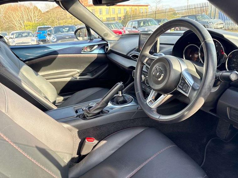 Thank you for viewing our advert, we are pleased to be able to offer you this stunning MAZDA MX-5 SPORT NAV finished in Blue, Black Leather Interior, Bluetooth, SAT NAV, Alloy Wheels and a rear parking camera. The Lookers Approved Used Programme Comes with a host of benefits which include a Minimum 3 Months Lookers RAC Warranty a RAC Safety check. Certified check to verify vehicle history and mileage a Minimum Of 9 months MOT All vehicles serviced by our Lookers Approved technicians with a minimum of 6 months of motoring or 6, 000 miles a minimum of 3mm of Tyre Depth & Discs replaced if worn more than 70%. Here at Lookers Approved Used, we very much look forward to giving you a warm welcome, providing you with excellent customer service. Along with our professional service and advice, we'll help provide you with the right MINI that suits your requirements. Situated only 10 minutes from the M6 motorway at Junction 16 and only 5 minutes from Crewe train station, we are ideally placed and easily accessible via different modes of transport. If you are viewing from a distance let us, bring the car to you via video link where one of our Lookers Approved Used Car experts will demonstrate the car to you via a link to your smart device so you can view the vehicle in the comfort of your own home with the family! Please feel free to browse the reviews of our retail centre on google with over 700 reviews with a star rating of 4.8 stars! We'll look forward to assisting you and would love to welcome you to Lookers Approved Used Crewe.
